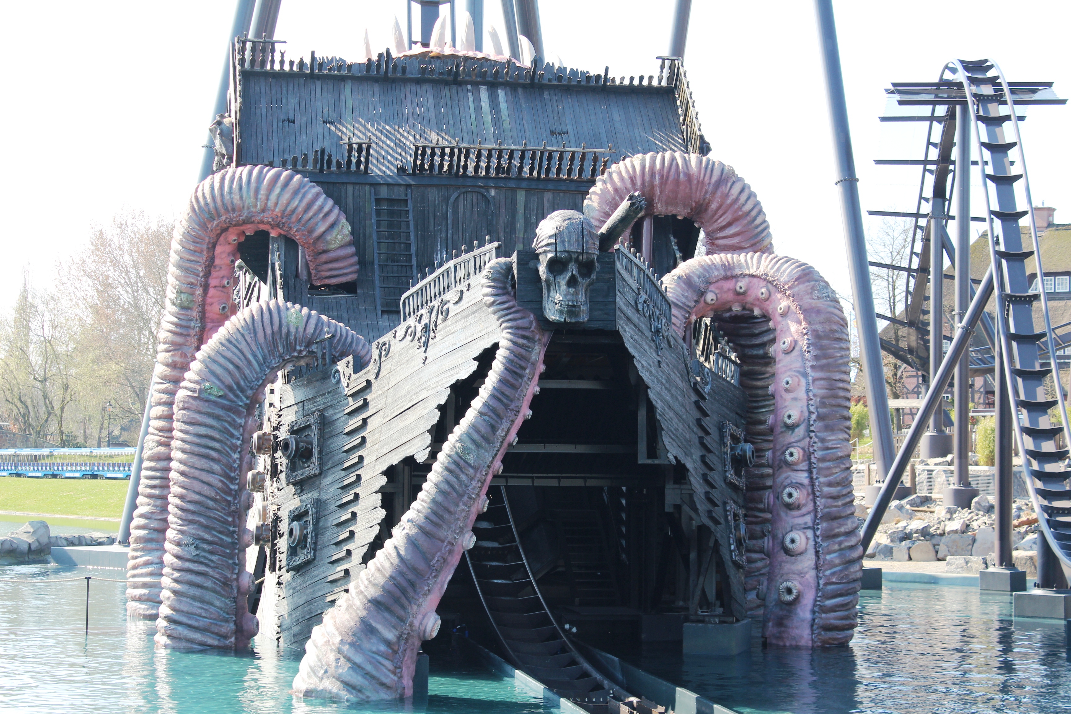 Well guess what!? Das Teil ist in einem Freizeitpark! Und bevor man sich über Realismus und Plausibilität streitet sollte man sich mal Gedanken drüber machen was dass Teil bezwecken soll. Denn wenn zumindest ich etwas realistisches wollte, dann würde ich in erster Linie nicht wollen dass eine fette Coasterschiene durch das Maul der Krake durchfährt, im innern des Schiffes durch den A***s oder sonstwas der Krake kracht, und am Ende des Schiffes mit jauchzenden Passagieren wieder rausdonnert! Da ist mir ein mikriger Mast ziemlich wayne!