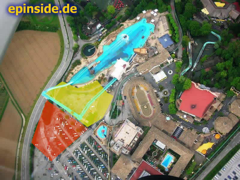 Außerhalb der Zufahrtstraße zum Parplatz gehört dem Europa-Park kein Land bis auf den Bereich der momentan als Lagerfläche benutzt wird und DARAUS lässt sich nun wirklich kein Wasserpark zaubern. Wasserpark und/oder andere Urlaubs-Konzepte wie Camping etc. kommen nur für die wirkliche Erweiterungsfläche zwischen Autobahn und Rust (entlang der Zufahrtsstraße vom Park) in Frage. Das ist zwar ein paar Meter weg vom eigentlichen Park, jedoch gibt es dann hier keine Lärmbeschränkungen und z.B. Shuttlebusse könnten hin und her pendeln. Das funktioniert z.B. in Walt Disney World sogar in noch viel größerem Stil perfekt.