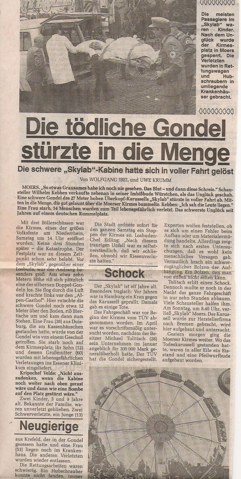 Ich habe hier einen Zeitungsbericht über den tödlichen Skylab Unfall in Moers: