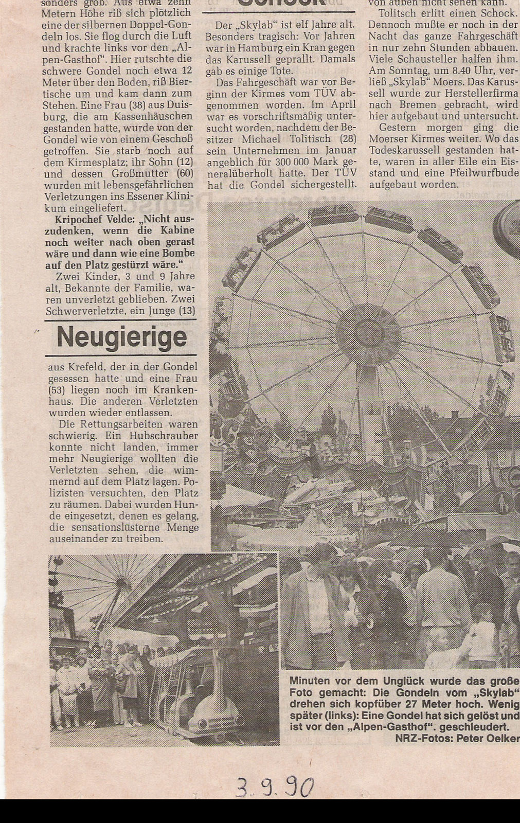 Ich stand genau zum Zeitpunkt des Unfalls mit einem Freund bei "Kebben" und wir aßen eine Bratwurst die uns dann glatt im Halse stecken blieb als wir nach einem großen Knall zum Skylab hoch schauten wo dann eine Gondel fehlte.