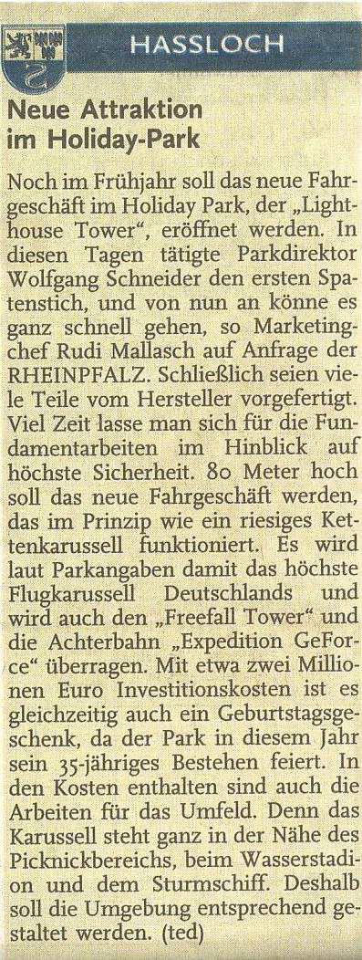 habe hier noch einen kleinen Zeitungsausschnitt von der RHEINPFALZ über den Lighthouse Tower: