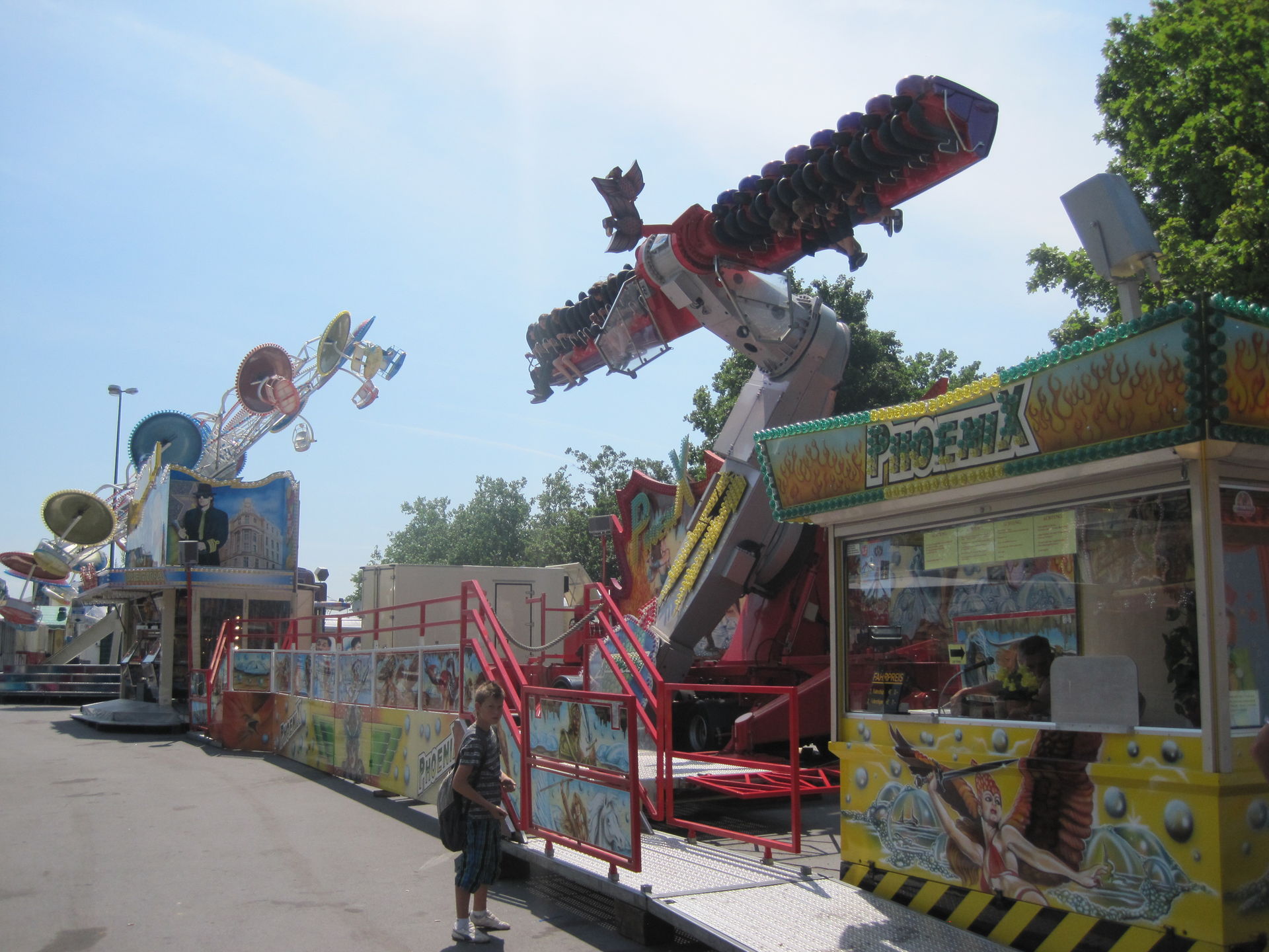 Kürzlich hatte ich mir als Gedankenspiel mal überlegt, was für ein Fahrgeschäft ich mir anschaffen würde, wenn ich Schausteller hier in der Schweiz wäre - und da war der Heartbreaker dann eben ganz oben, aus den erwähnten Gründen: Das Ding ist kompakt dimensioniert sowie schnell aus- und wieder eingepackt - perfekt für die ganzen kleinen Wochenendkirmessen hier, die meist nur Freitagabend bis Sonntag dauern und in der Regel auf irgendwelchen Stadt- oder Dorfplätzen mit beengten Verhältnissen stattfinden, wo wenig Platz für grössere Kisten ist. Gleichzeitig würde man aber auch auf den meisten der paar grösseren Plätzen sein Publikum finden, da es eben kaum eine vergleichbare Fahrt gibt (zurzeit reisen in der Schweiz 1 Huss TopSpin, der aber praktisch nie im Einsatz steht, und 1 KMG Discovery).