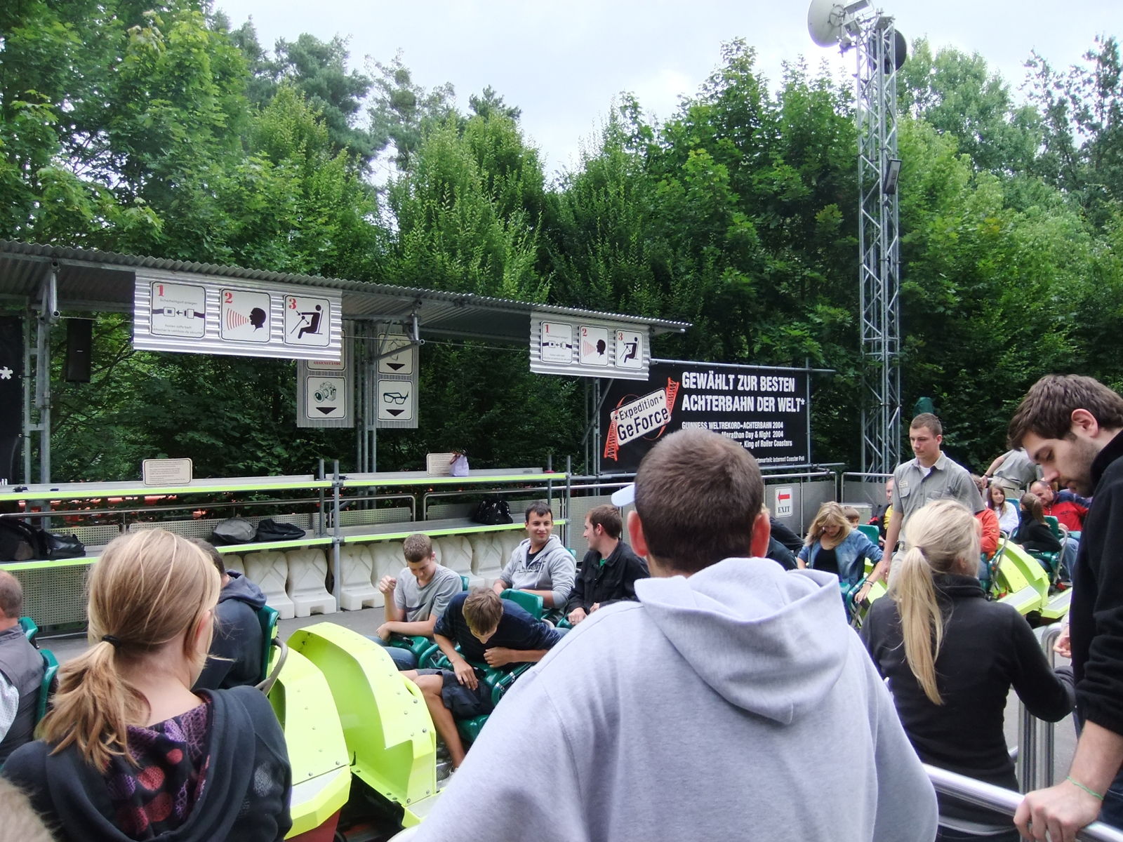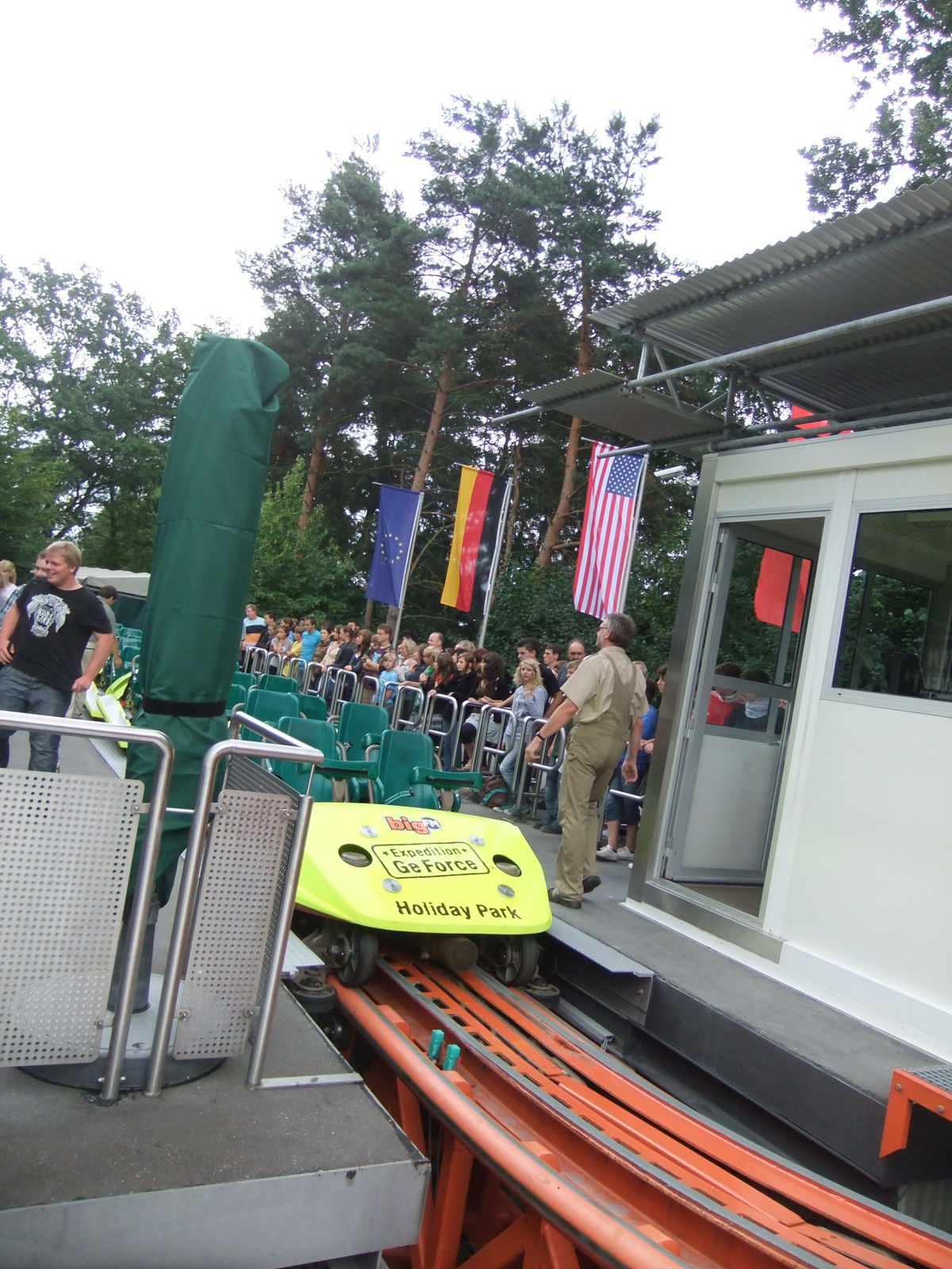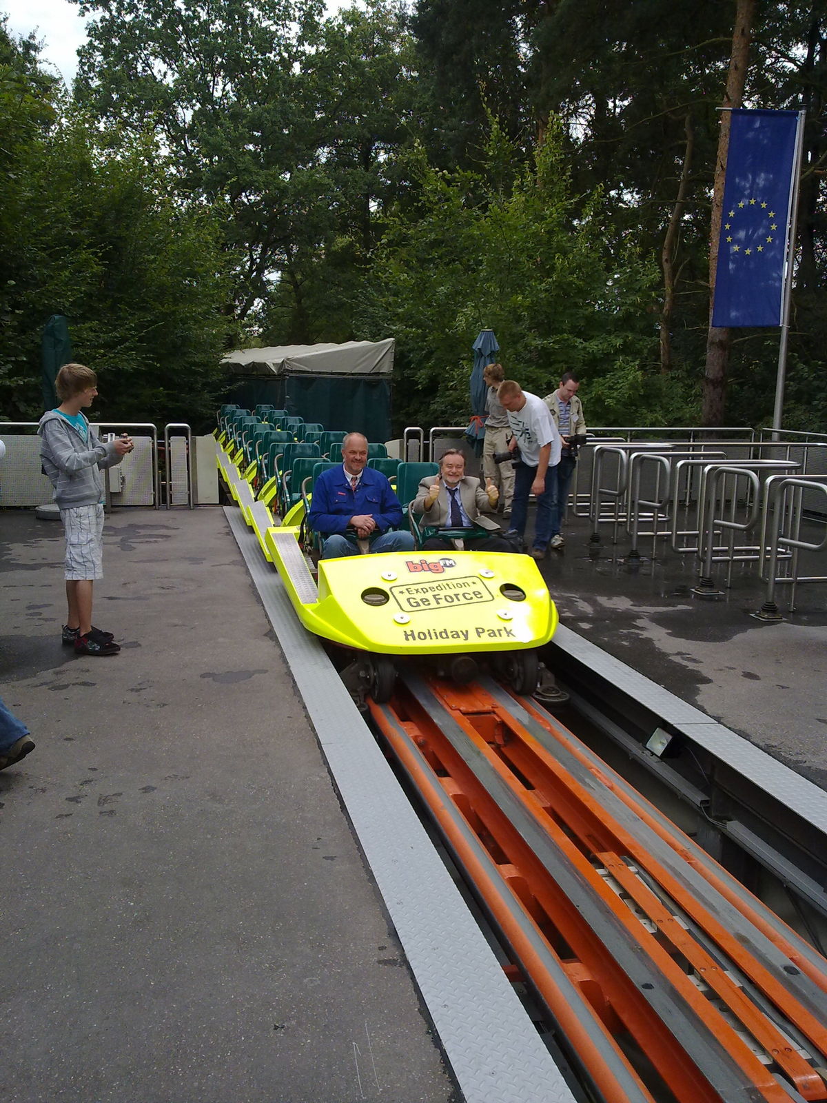 So, ich kam gestern endlich wieder in den Genuss die GeForce zu fahren. War schweinegeil, sie fährt sich genauso gut wie vorher . Konnte sie 4 mal fahren, gestern war viel los im Park. Etwas komisch fande ich die Warteschlange. Der Eingang wurde abgesperrt, dort standen zwei Mitarbeiter. Alle 5 Minuten wurden dann ein paar Leute durch die Warteschlange gelassen, dann wurde wieder zu gemacht. Die Leute in der Schlange standen bis vor dem Souvenirshop. Wartezeiten an der EGF Gestern waren teilweise 15 als auch 30 Minuten. Ich bin echt froh, das die Bahn wieder läuft, werde nächstes Jahr definitiv wieder den Park besuchen, die neue Achterbahn Hollys Wilde Autofahrt hat es mir auch echt angetan, auch wenn ich sie noch nicht fahren konnte, da die ja erst Heute öffnet. Passt super in den Park.