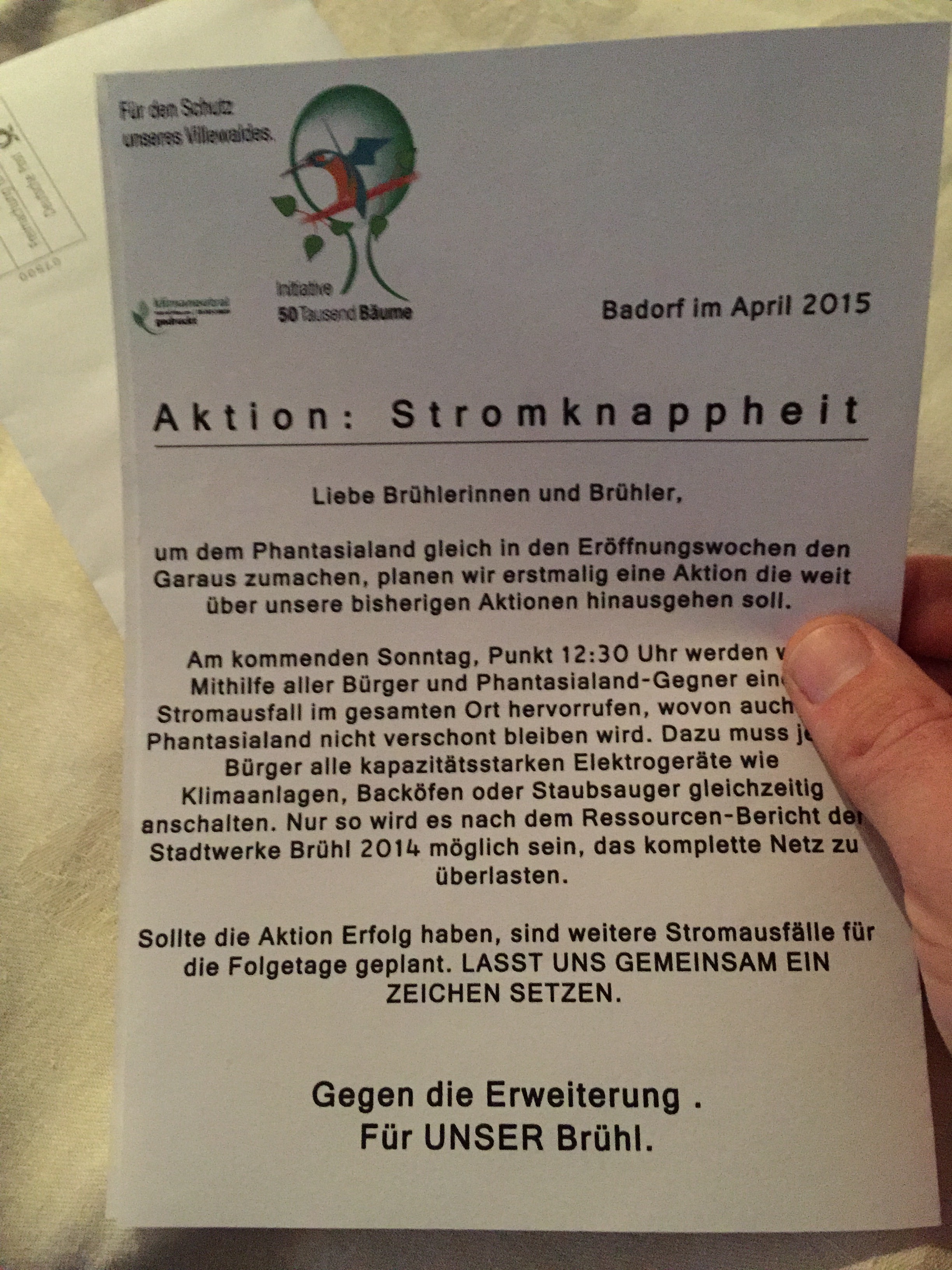 Mein Kollege hat übrigens berichtet, dass auch im Hürthpark kein Strom war. Aber das ist ja nicht so spannend, da hing ja niemand kopfüber von der Decke.