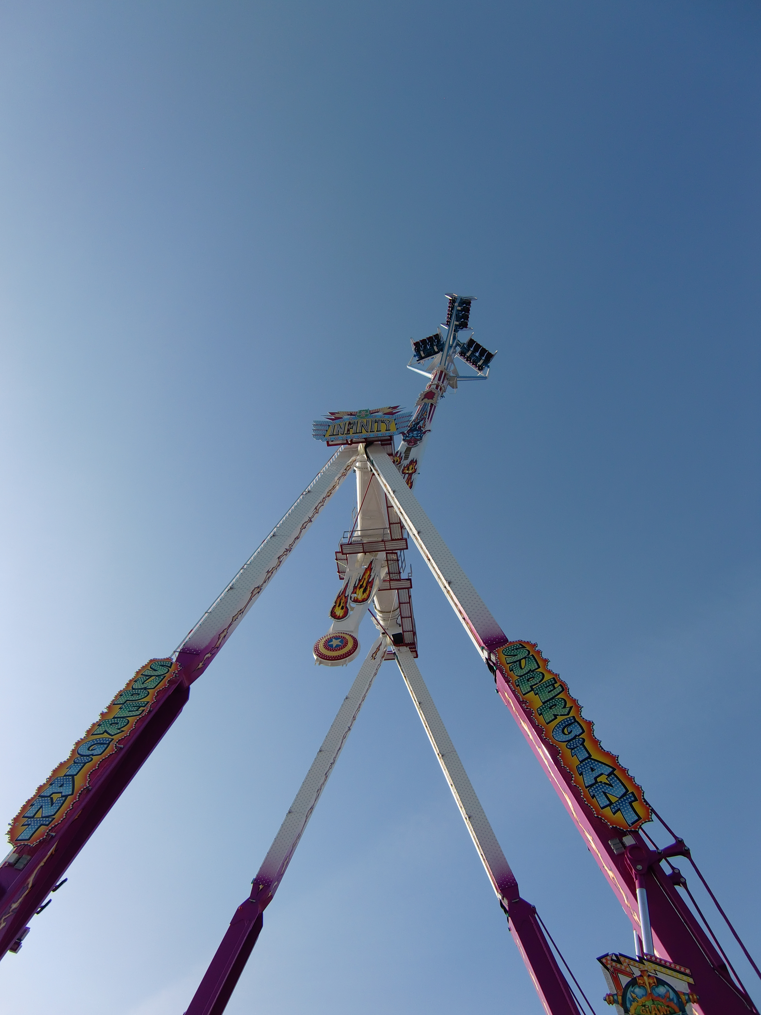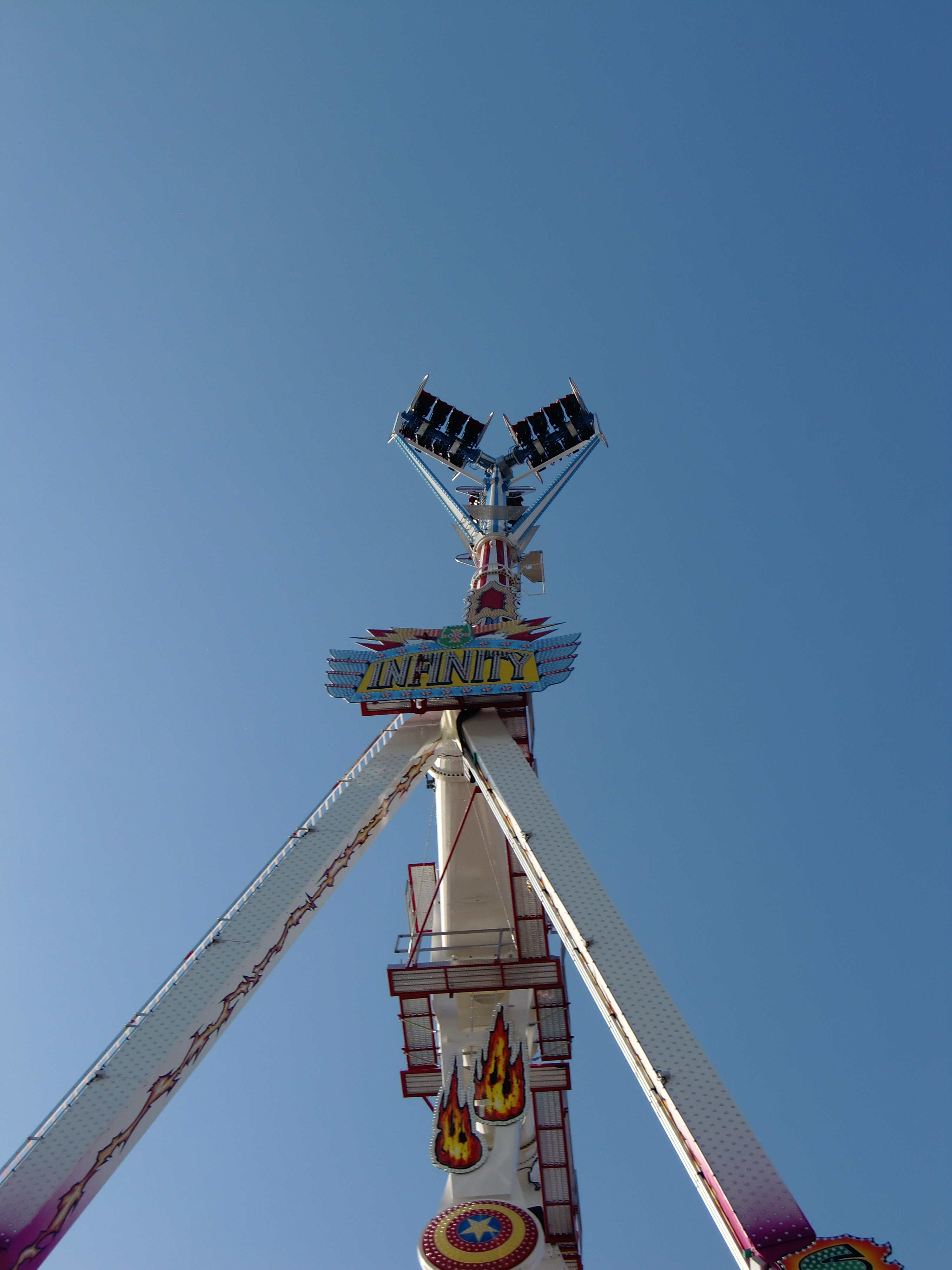Wie es der Zufall so will muss ich dieses Wochenende als Schiedsrichter zur deutschen Meisterschaft im Tischtennis, welche passenderweise in Pforzheim stattfindet. Als dann bekanntgegeben wurde, wo dieses Teil seine Premiere feiert, war die Freude natürlich riesig und so wurde nach Abschluss des ersten Turniertages schnell den Anzug ausgezogen und der knappe Kilometer Richtung Messplatz gegangen. Und was soll ich anderes sagen als eine Textzeile, die man wohl in Bezug zu dieser Attraktion immer wieder lesen wird: A freak like me just needs infinity.
