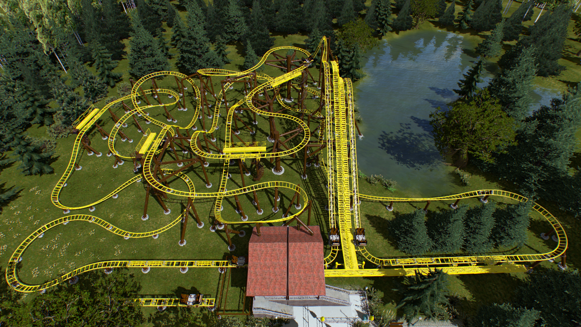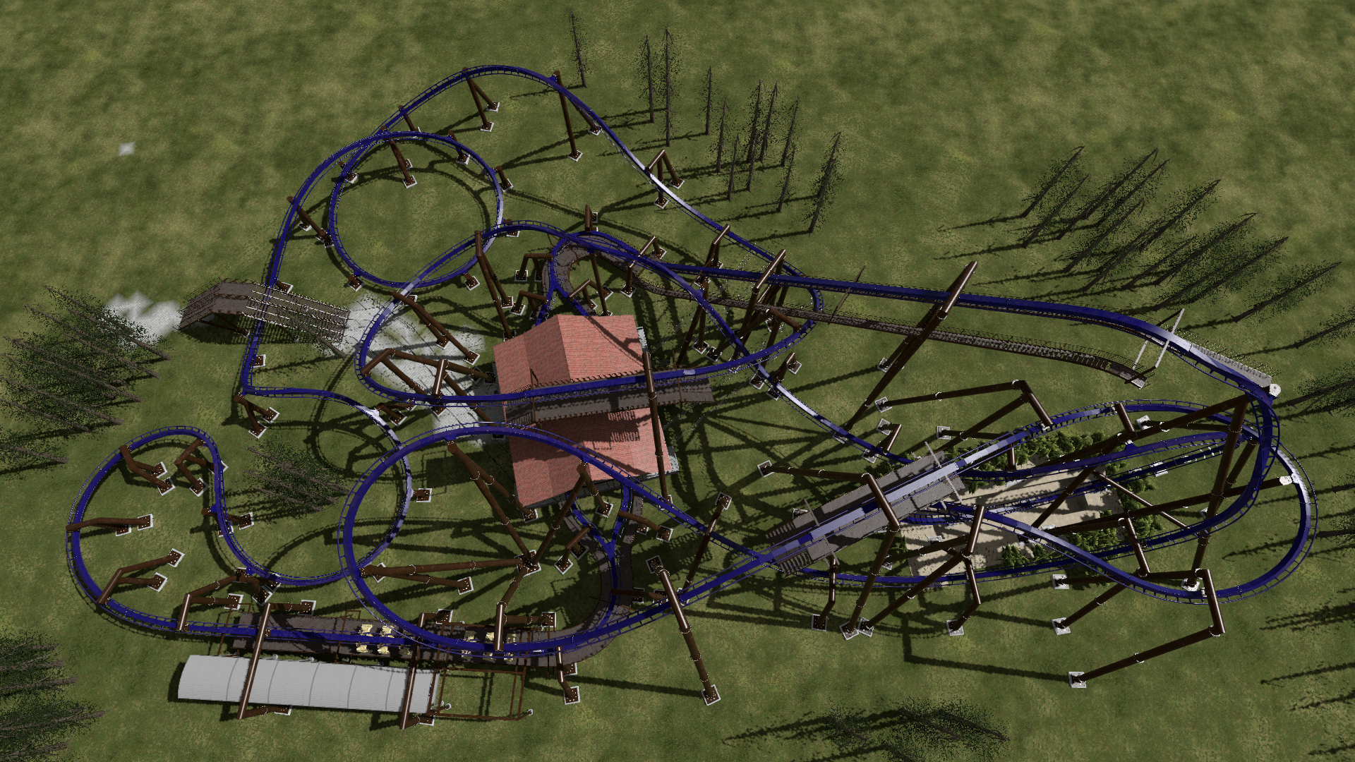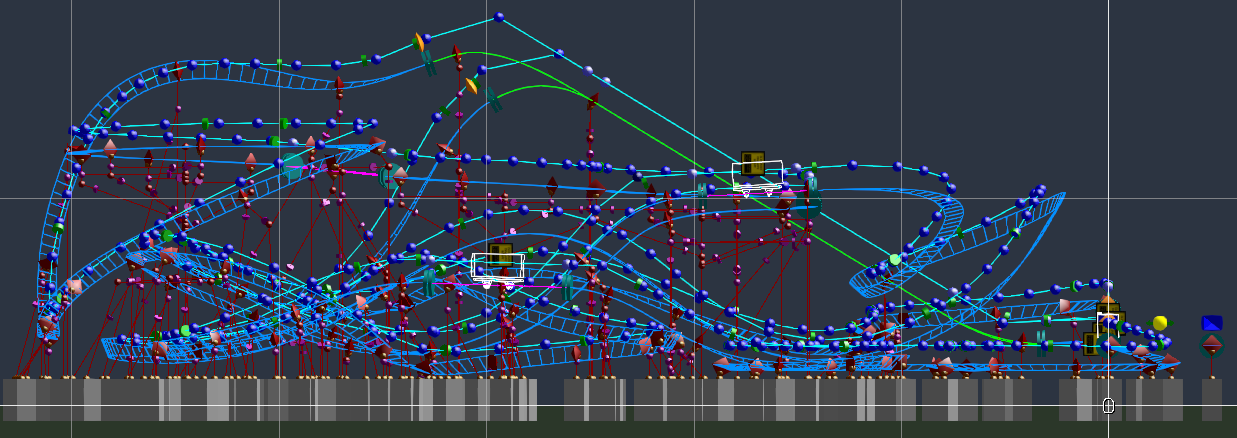 Danke! Ja, die Bremse soll ein bisschen die Geschwindigkeit vor dem loop überwachen und zudem dafür sorgen, dass eine möglichst hohe Taktung der Züge möglich ist. Das kommt momentan leider nicht so richtig zum Tragen, weil die Abfertigung mit der Doppelstation irgendwie nicht so richtig funktioniert. Ich glaube ohne Skripte kann ich nicht einstellen, dass die Stationen schön gleichmäßig abwechselnd arbeiten.