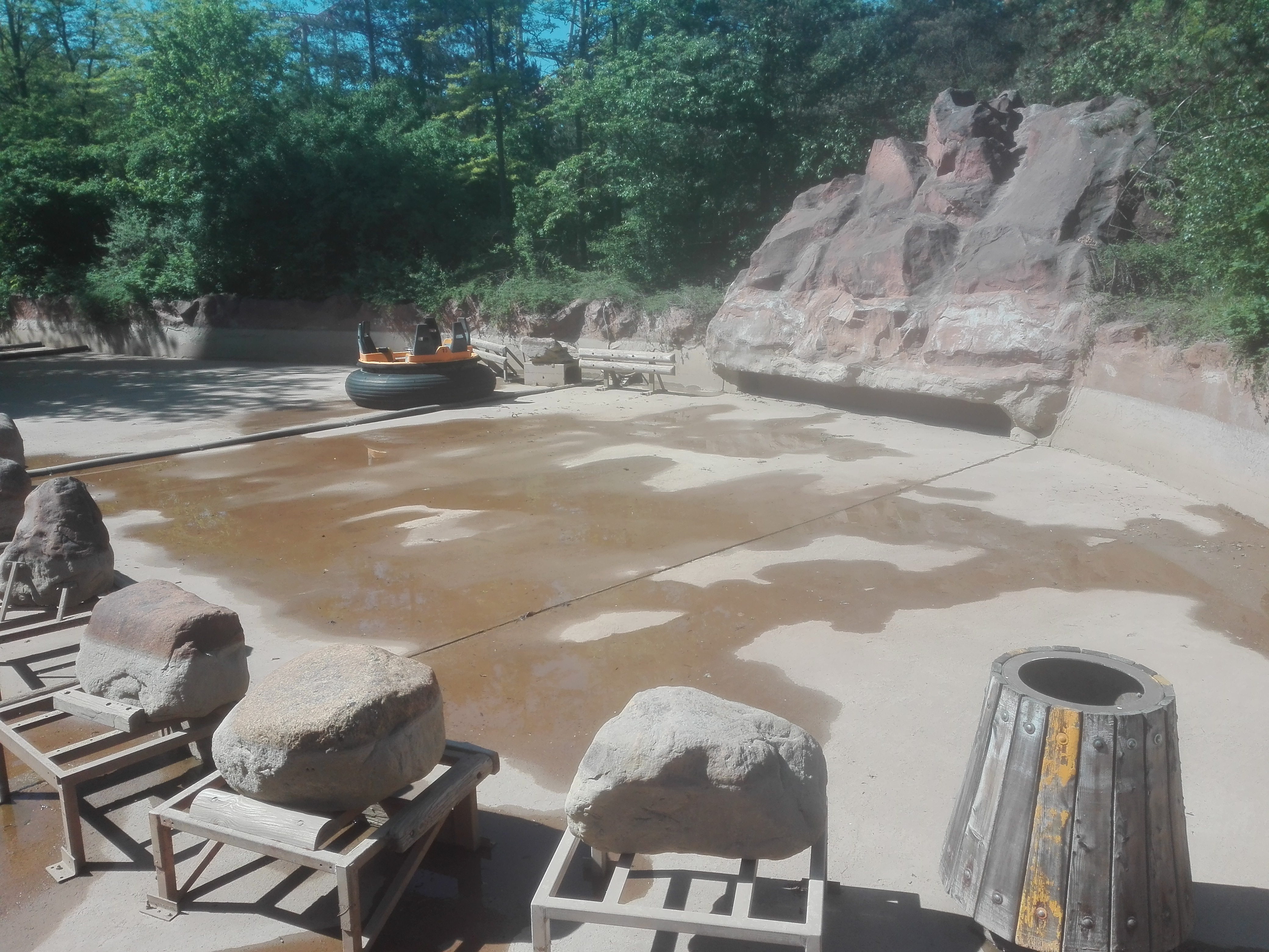 Bei Tabaluga wurde die Rinne abgerissen und der Weg mit ein paar Blumenkübeln zu gemacht. Aber die Deko steht immer noch lost in der Landschaft rum...