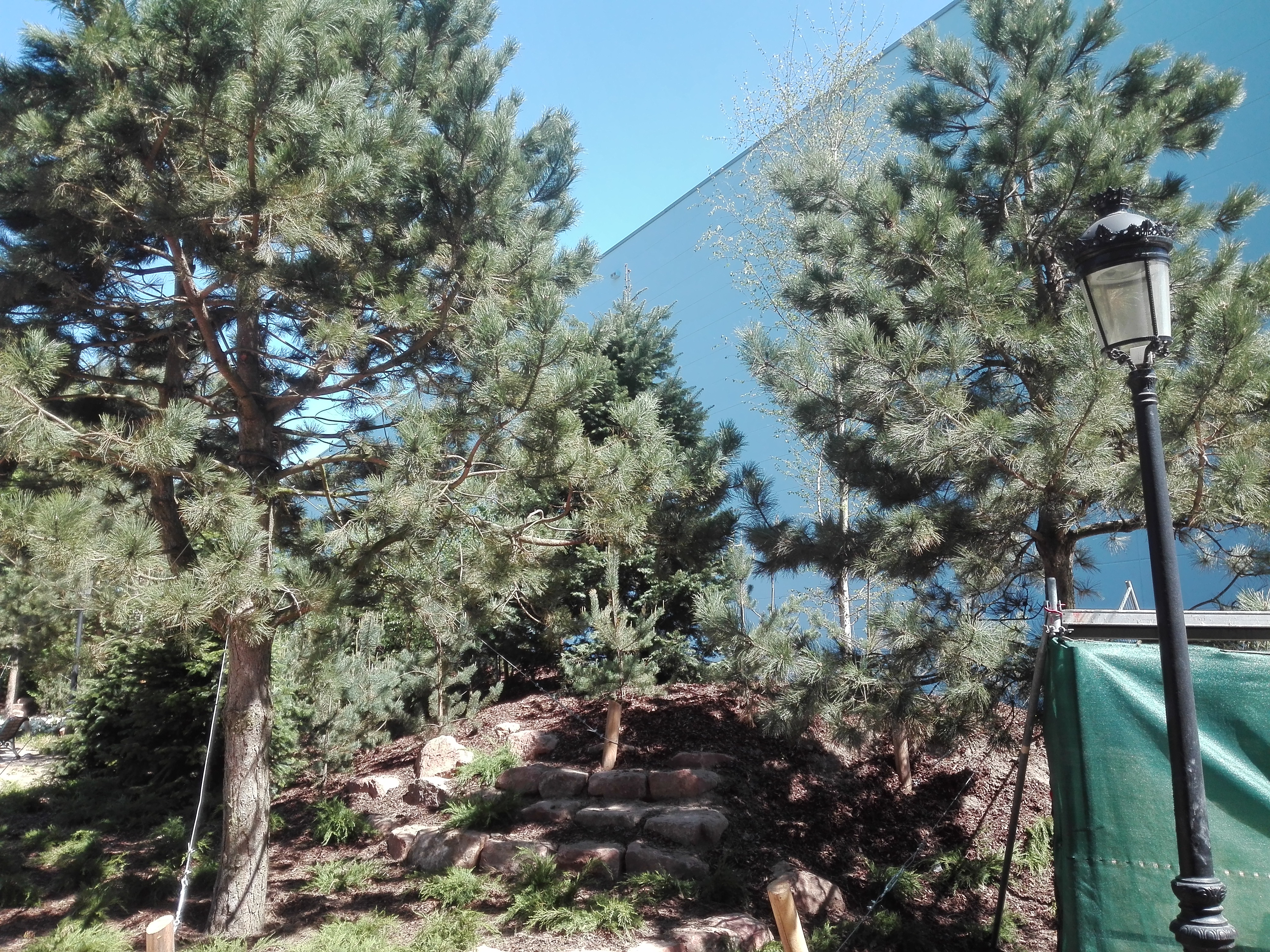 An der Seitenfront der Halle Richtung Donnerfluss wurden neue Bäume und Büsche gepflanzt: