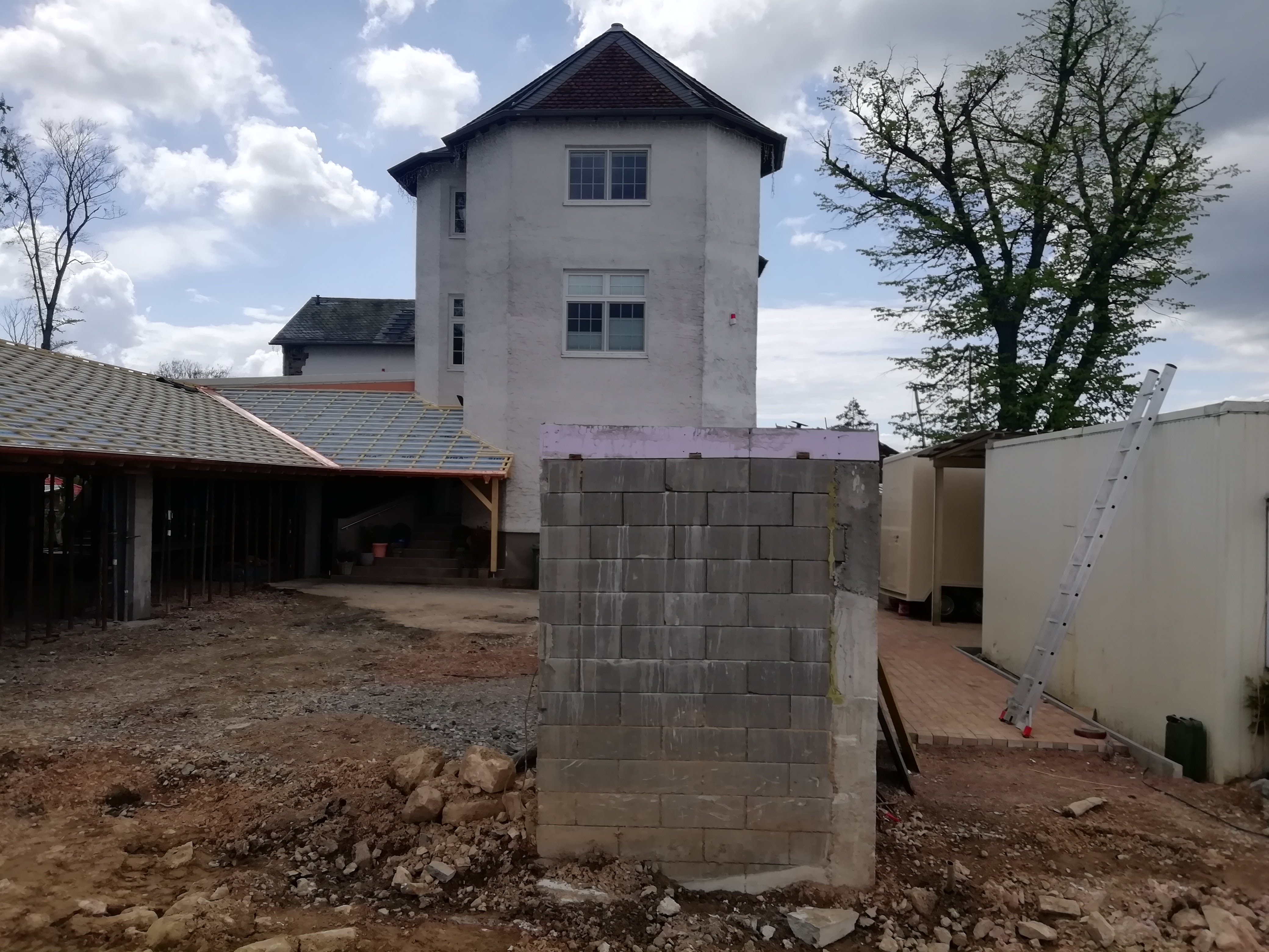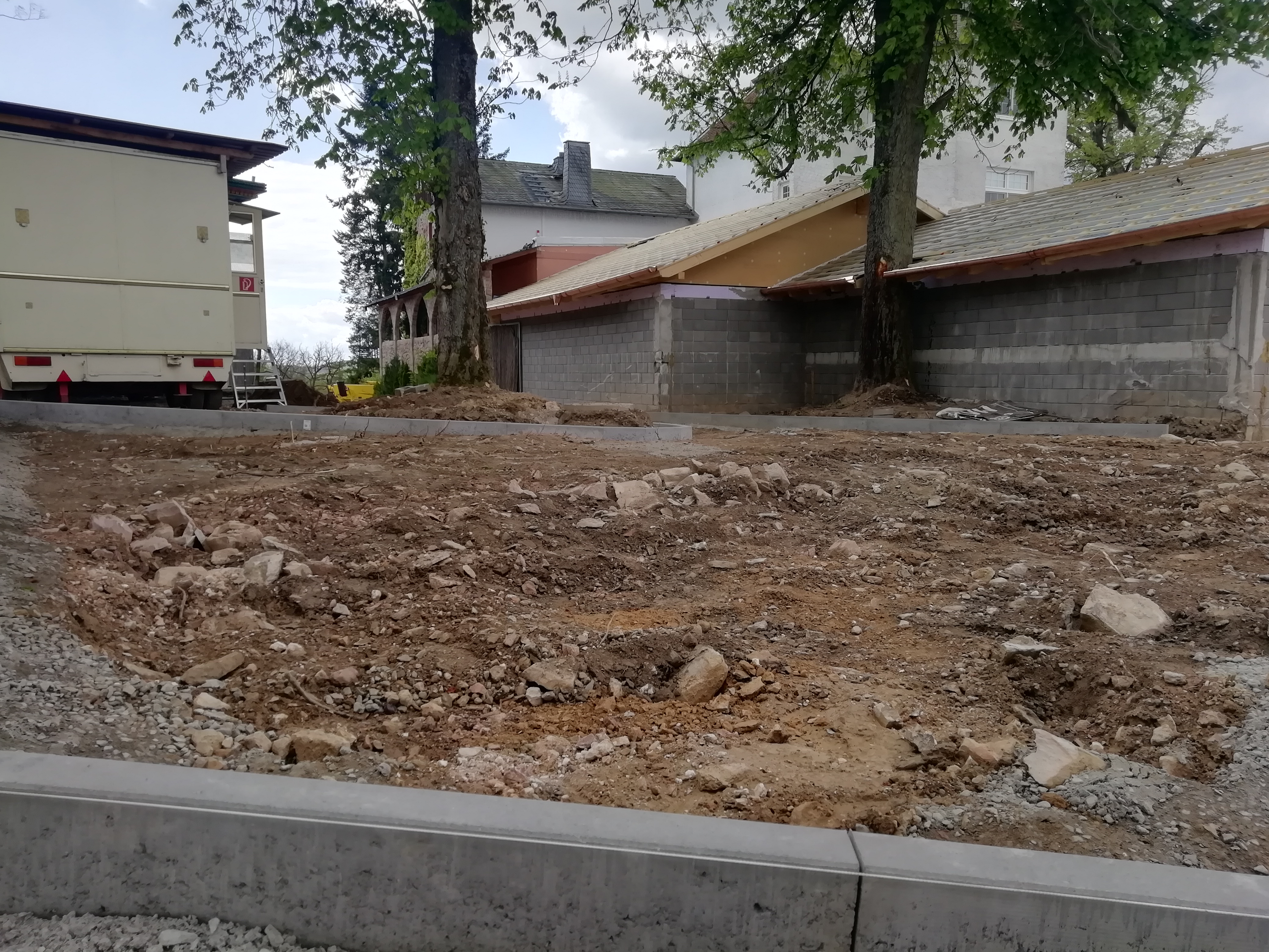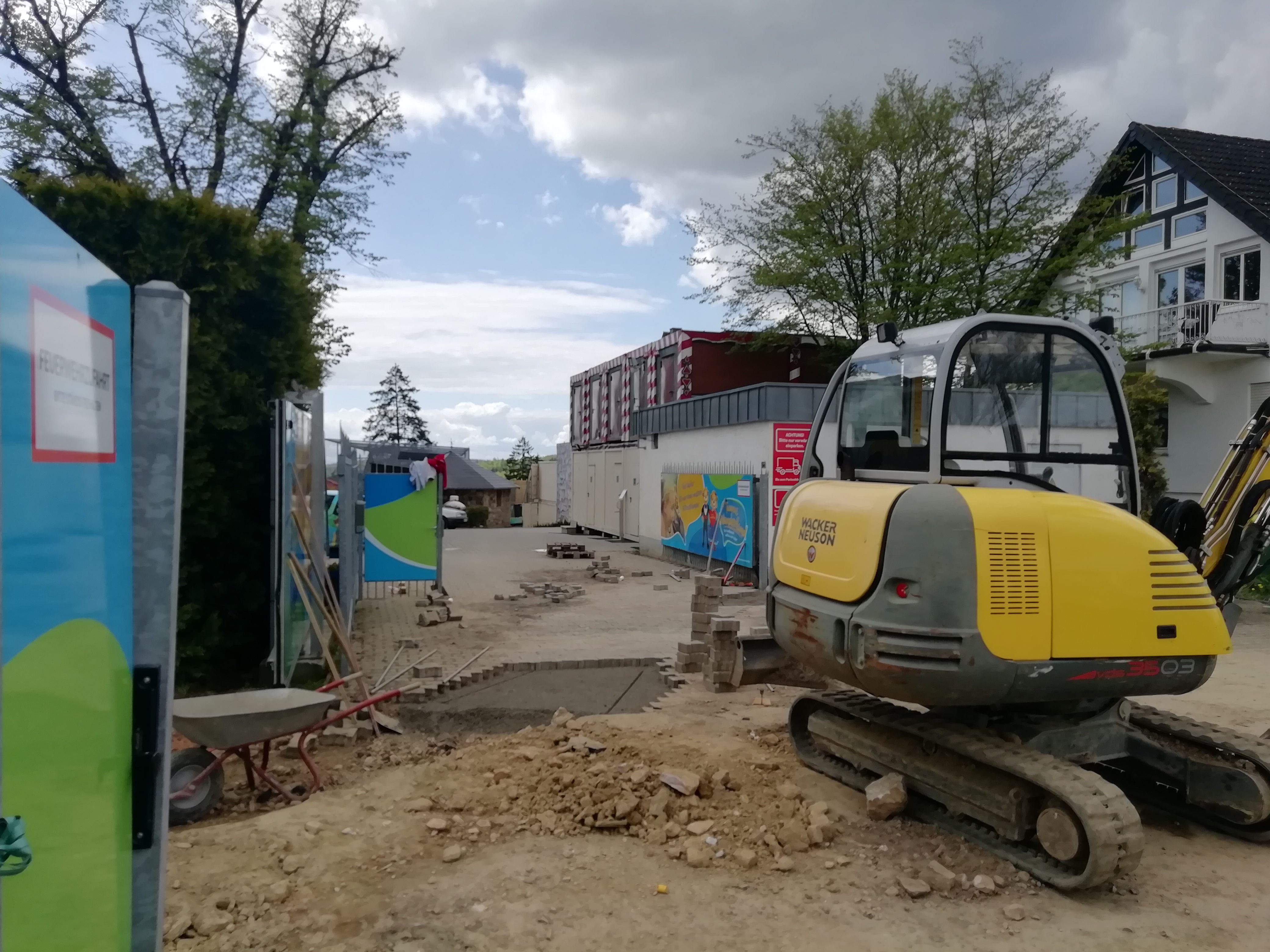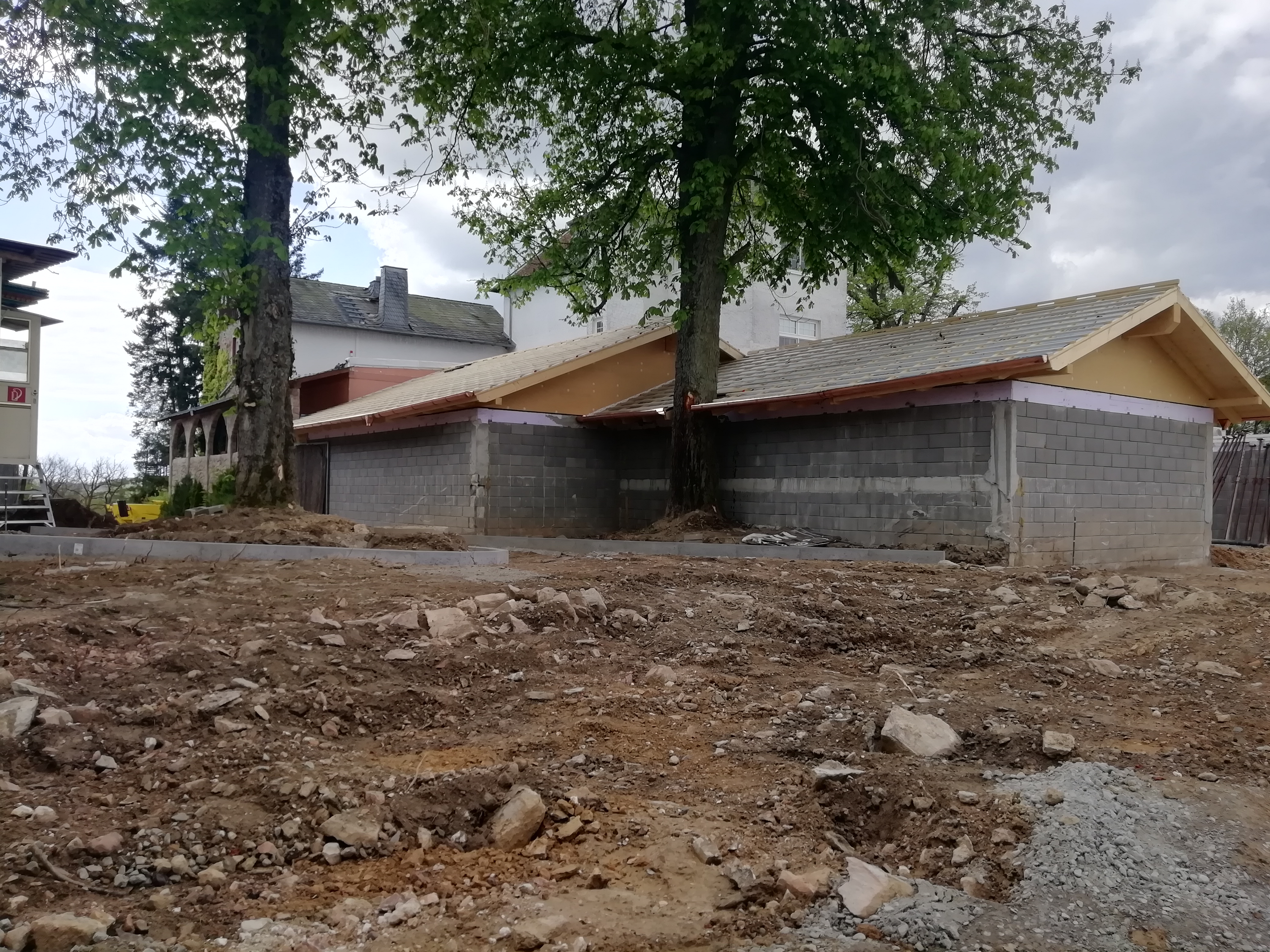 Im Bereich des Betriebshofes (frühere Straße/Parkplatzeinfahrt) entstehen neue Gebäude: