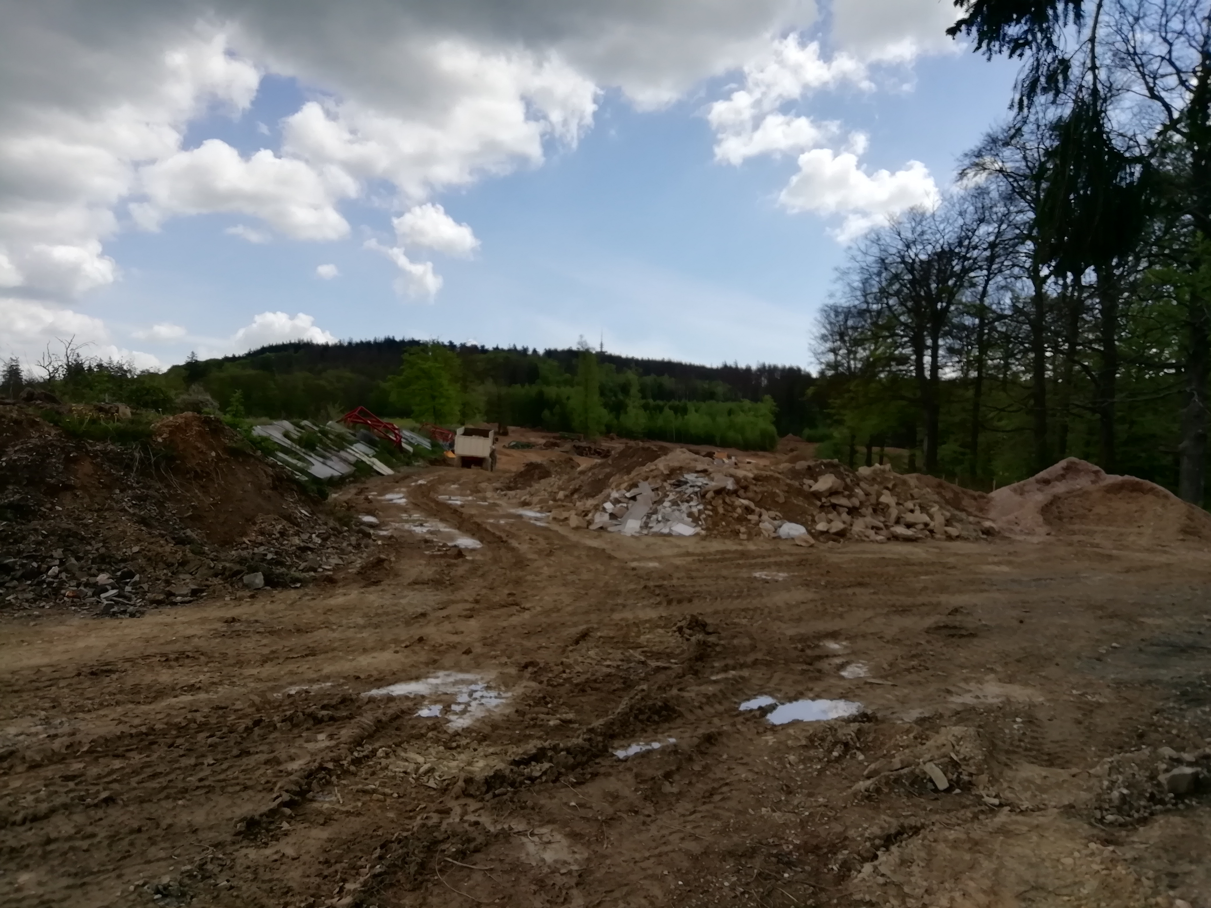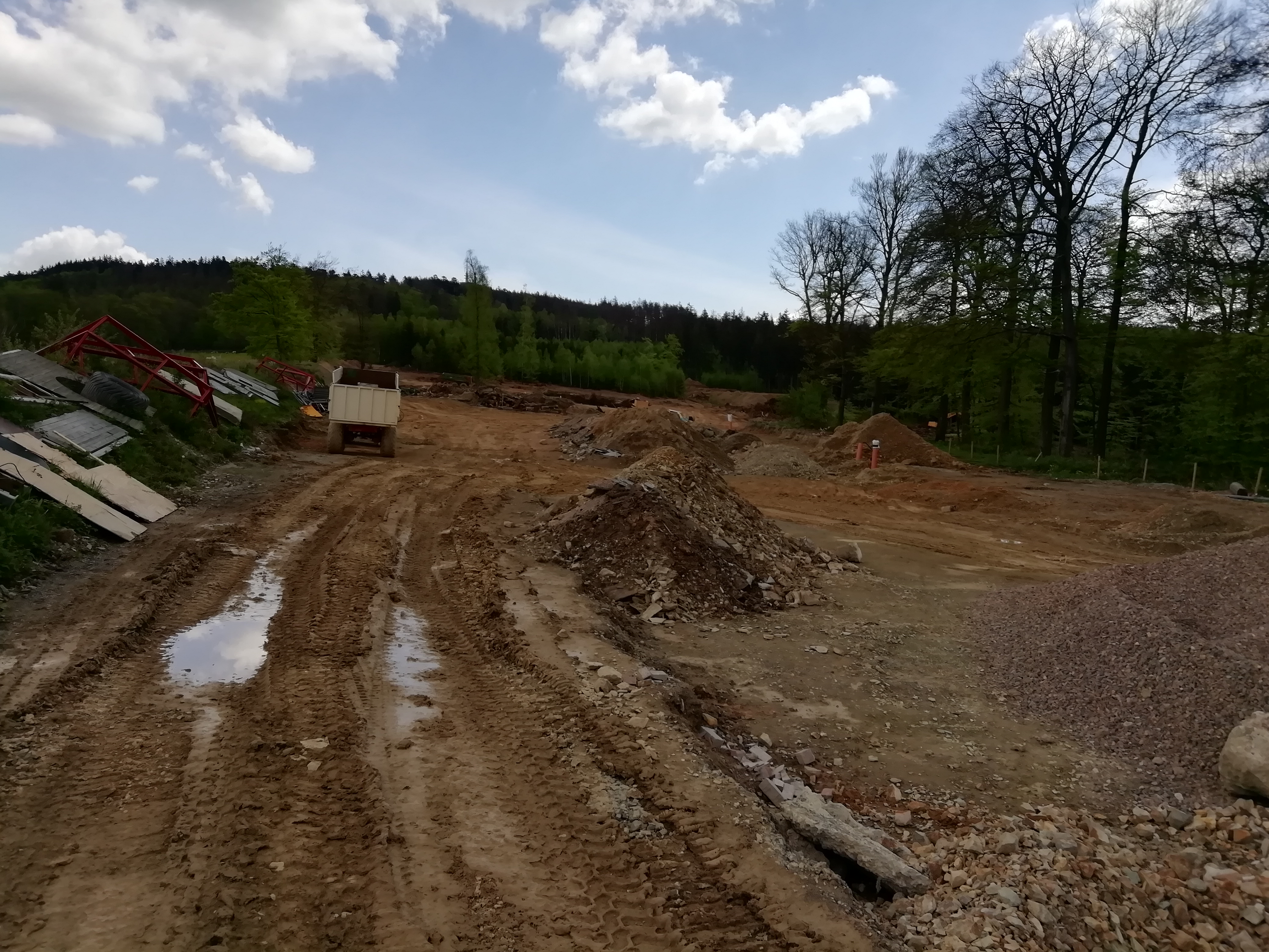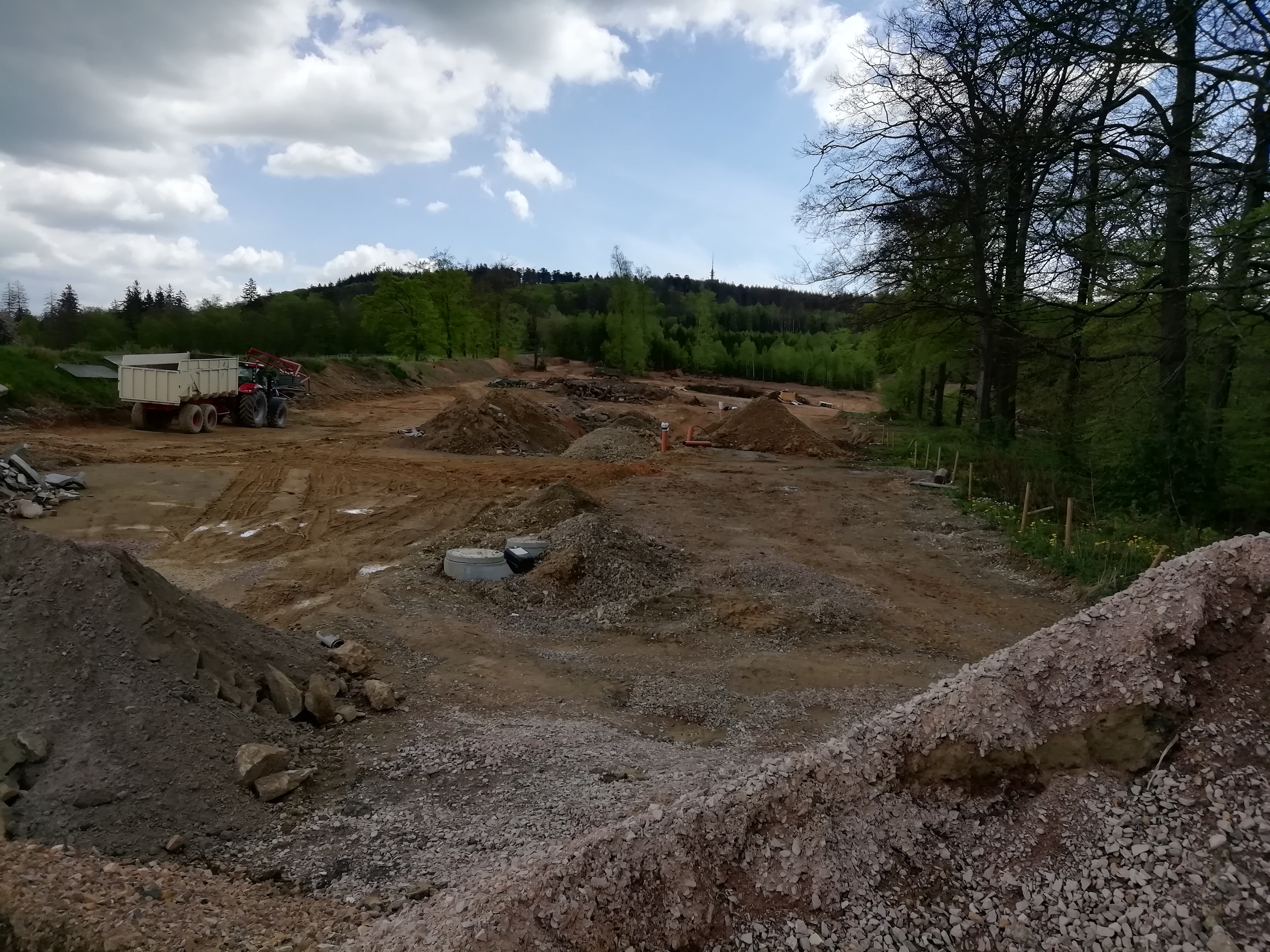 Auf der neuen Fläche wird weiter planiert, Leitungen Verlegt, modelliert usw:
