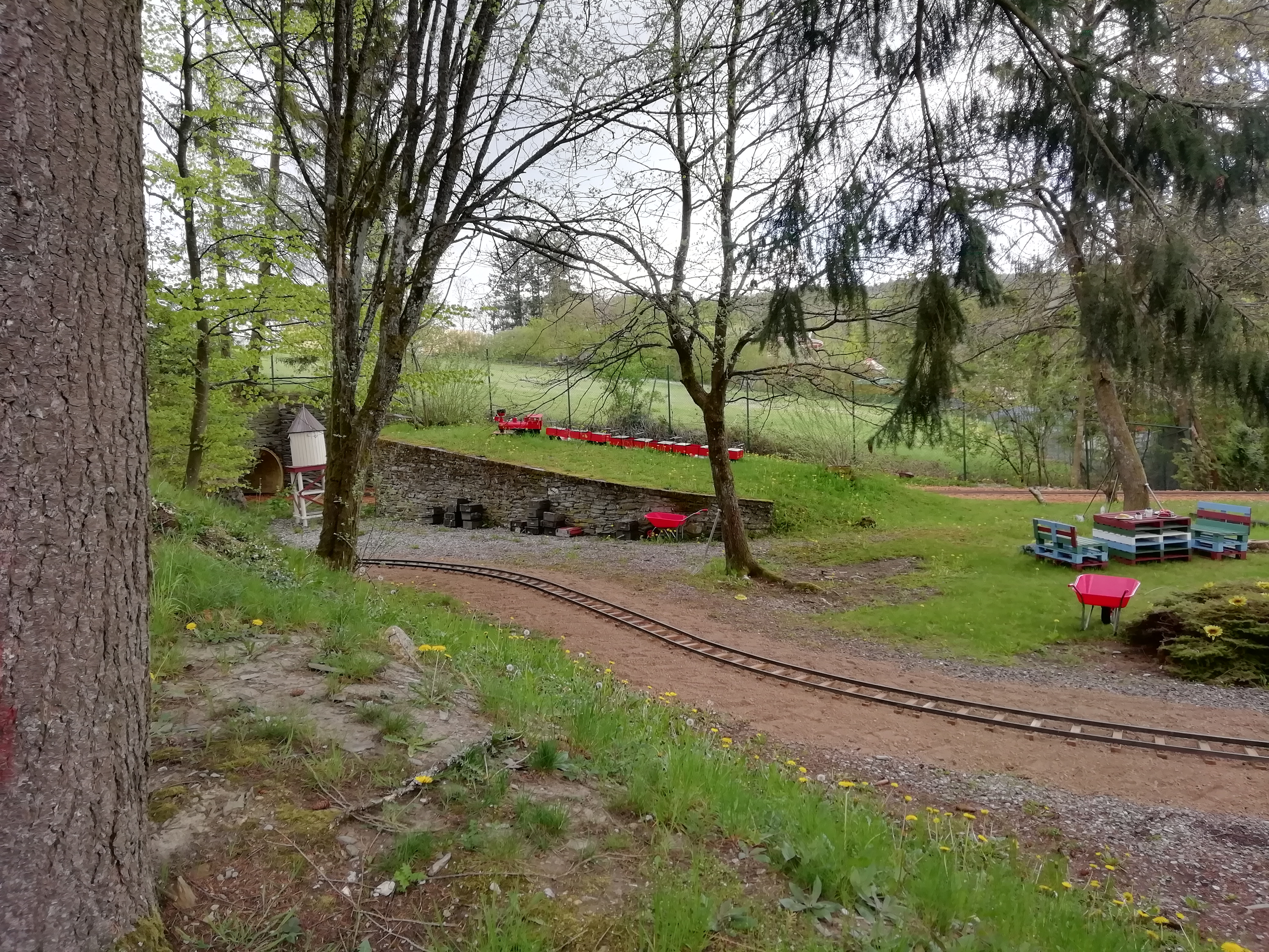 Einer der Züge ist nur noch Deko über den Tunnels, der verbliebene Schienenkreis wurde offenbar neu gemacht: