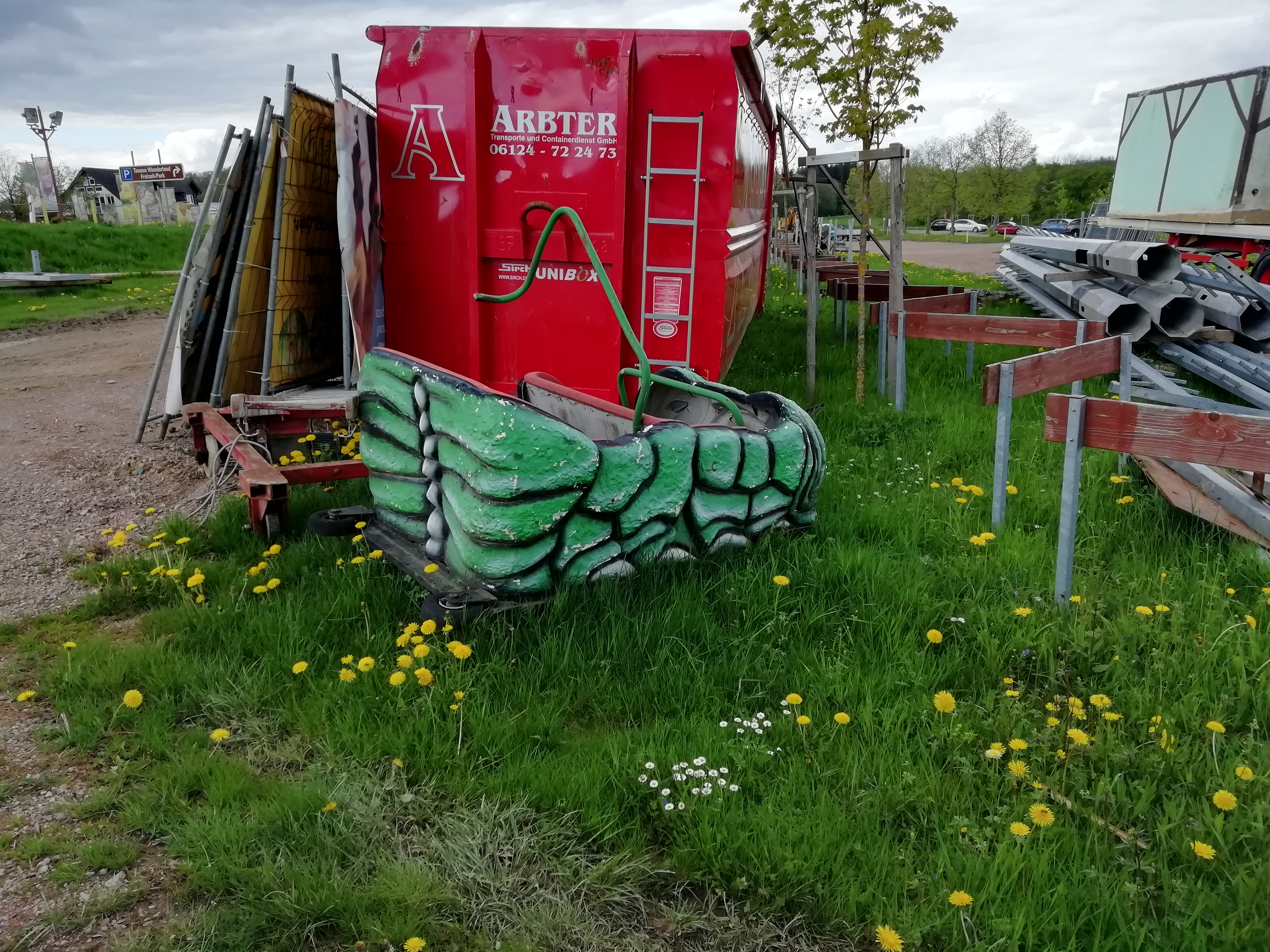 Auf dem Parkplatz liegt ein Geisterbahnwagen. Ist der von der Geisterschlange? Die steht aber doch in Bayern...