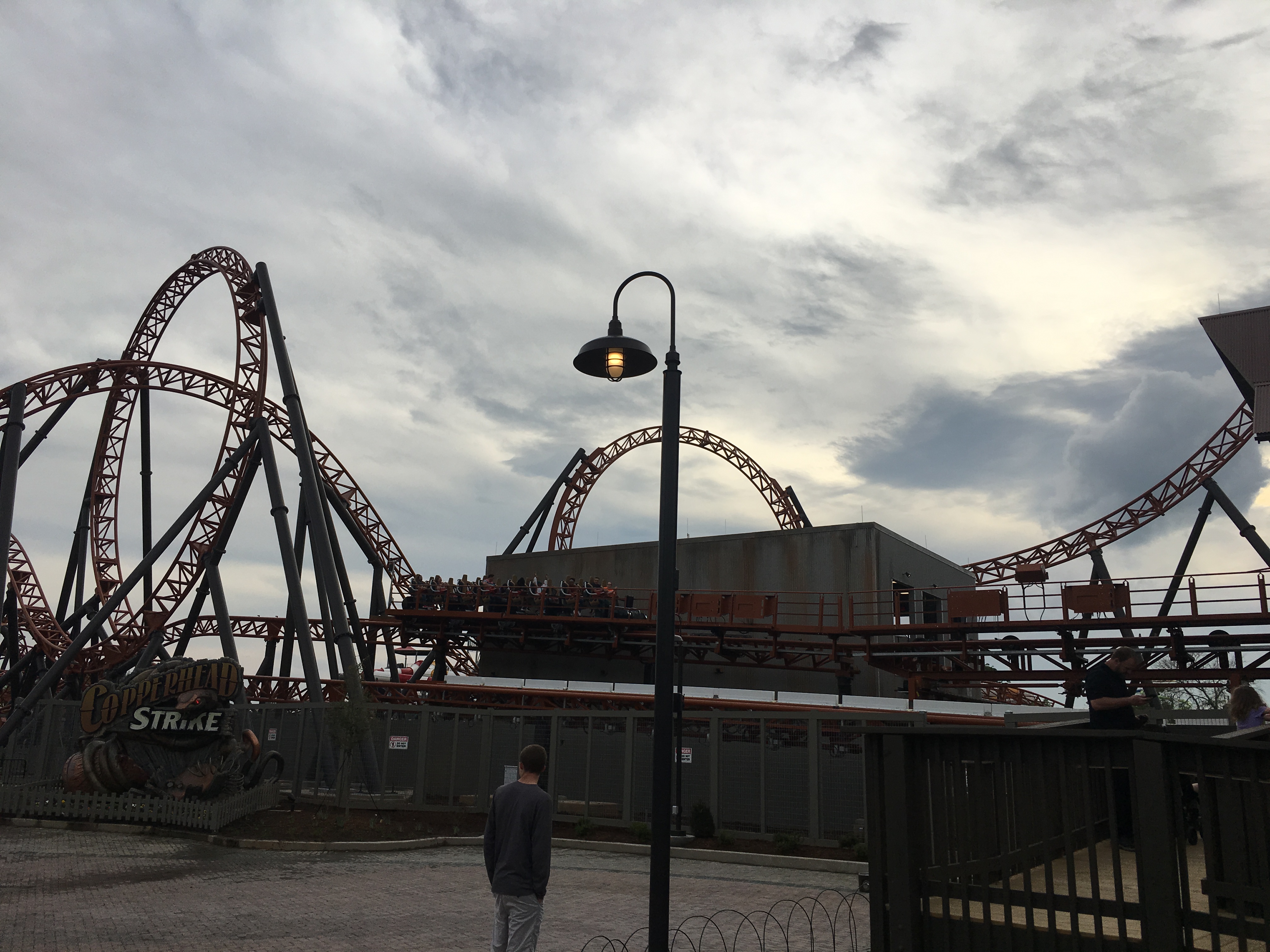 Beide Launches spürbar, wenn auch der erste besser ist. Die Inversionen bieten SEHR viel Hangtime. Das muss man natürlich mögen, aber mir gefiel es und ansonsten fährt Copperhead Strike sehr zügig durch sein Schienenwirrwarr und bietet somit Spaß!