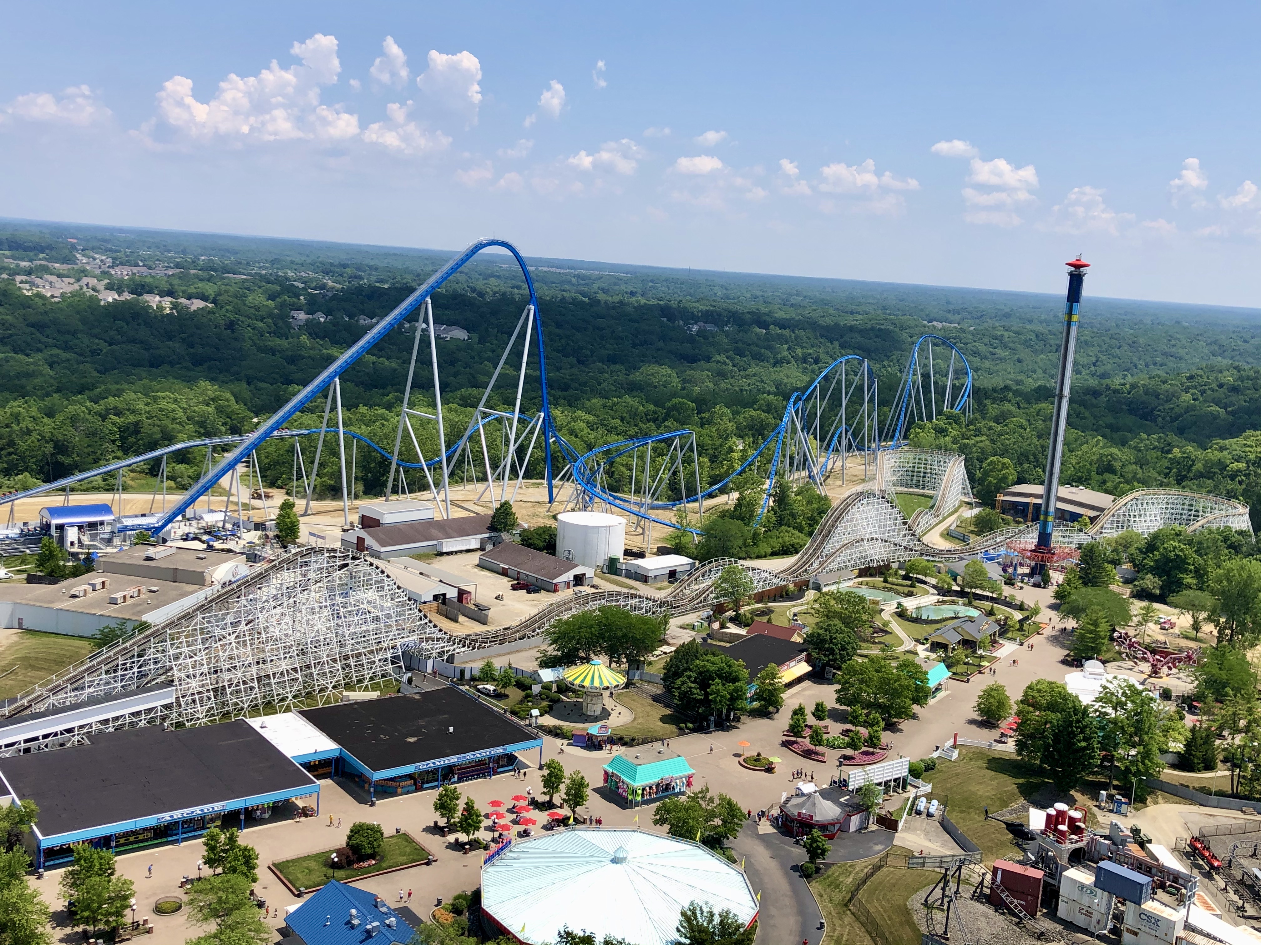 Kings Island USA 2020 Orion Achterbahn B&M Giga Coaster: 1621 Meter Gesamtlänge, 87,5 Meter Höhe (Höchste Abfahrt 91,4 Meter), Vmax: 147 km/h