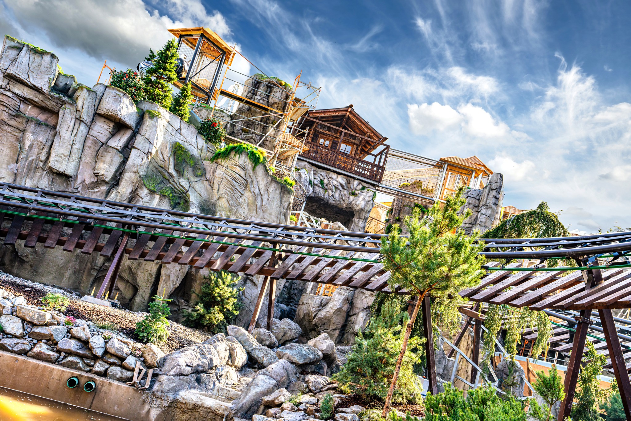 Ich finde die "Felsenlandschaft" äußerst unrealistisch und billig geraten. Das hat mit natürlichen Alpenfelsen aber mal so gar nichts gemeinsam. Ob man jetzt den Abenteuerpfad outdoor oder irgendwie thematisiert indoor macht,darüber kann man sich streiten. Aber die Gestaltung der Bahn wirkt für mich absolut enttäuschend.