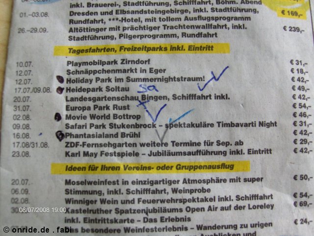 Treffpunkt: ca 08:00-08:30 Uhr vor dem Haupteingang, (die Bänder werden von onride ausgegeben).