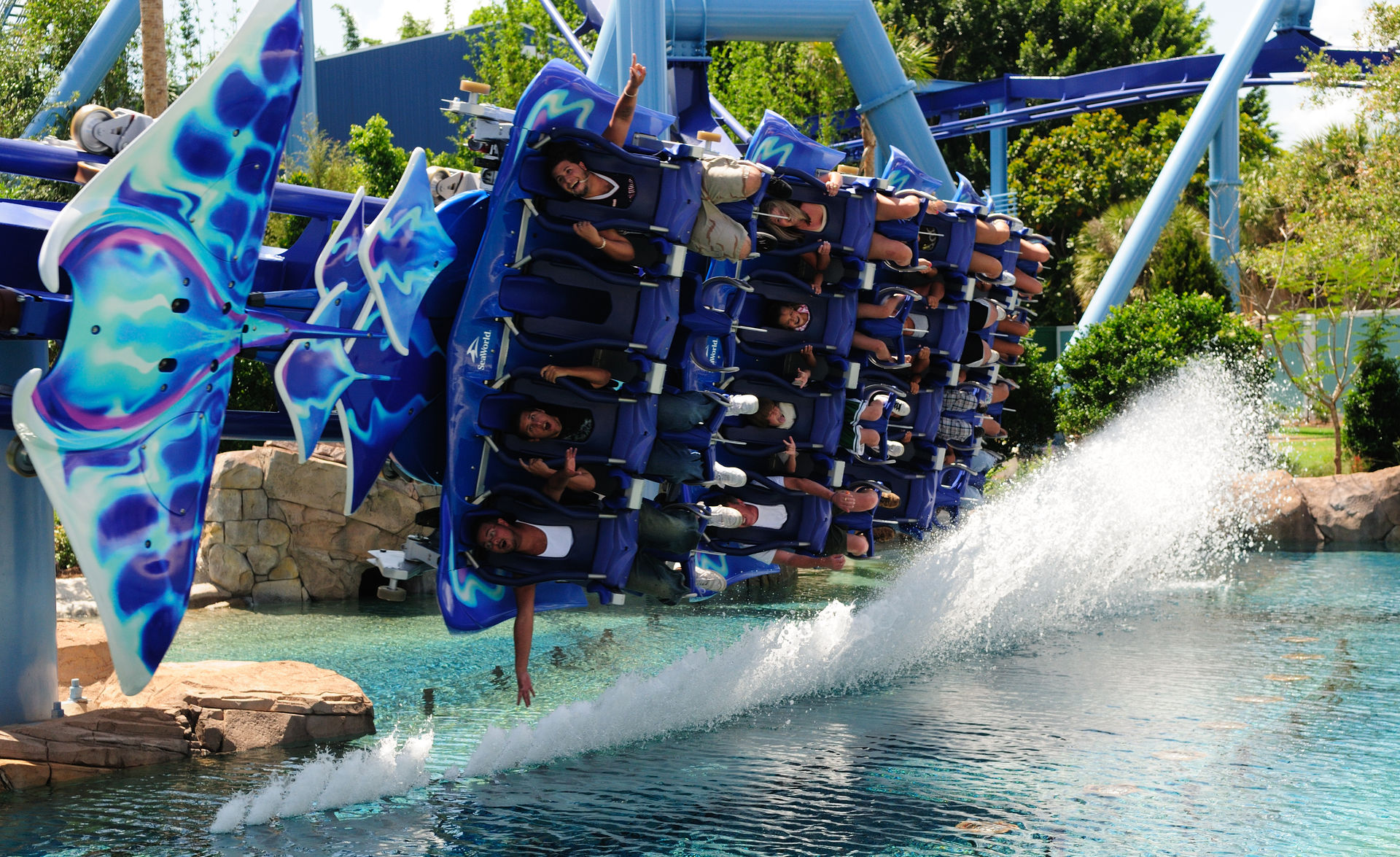 Und dann war da noch Seaworld. Ein Park, der in gleich in mehrerer Hinsicht "aus der Rolle fällt". Zunächst einmal – und das wird die meisten Tourteilnehmer (wir haben übrigens noch vier Rest-Plätze frei und nur noch vier Wochen zum Buchen, also Chop-Chop!) freuen – bricht der Park mit der "Tradition", in der Orlando-Area eher familienfreundliche Anlagen zu installieren: Sowohl Kraken als auch der neue Manta lösen bei mir bei 36°C Außentemperatur regelmäßig Blackouts aus. Der B&M-Flyer ist nebenbei eine Rarität und wohl die bestthematisierte Anlage ihres Typs und der Multilooper-Sitdown ist eine der wenigen Anlagen des Schweizer Herstellers, bei der die Spannung nach der Blockbremse nochmals zulegt.