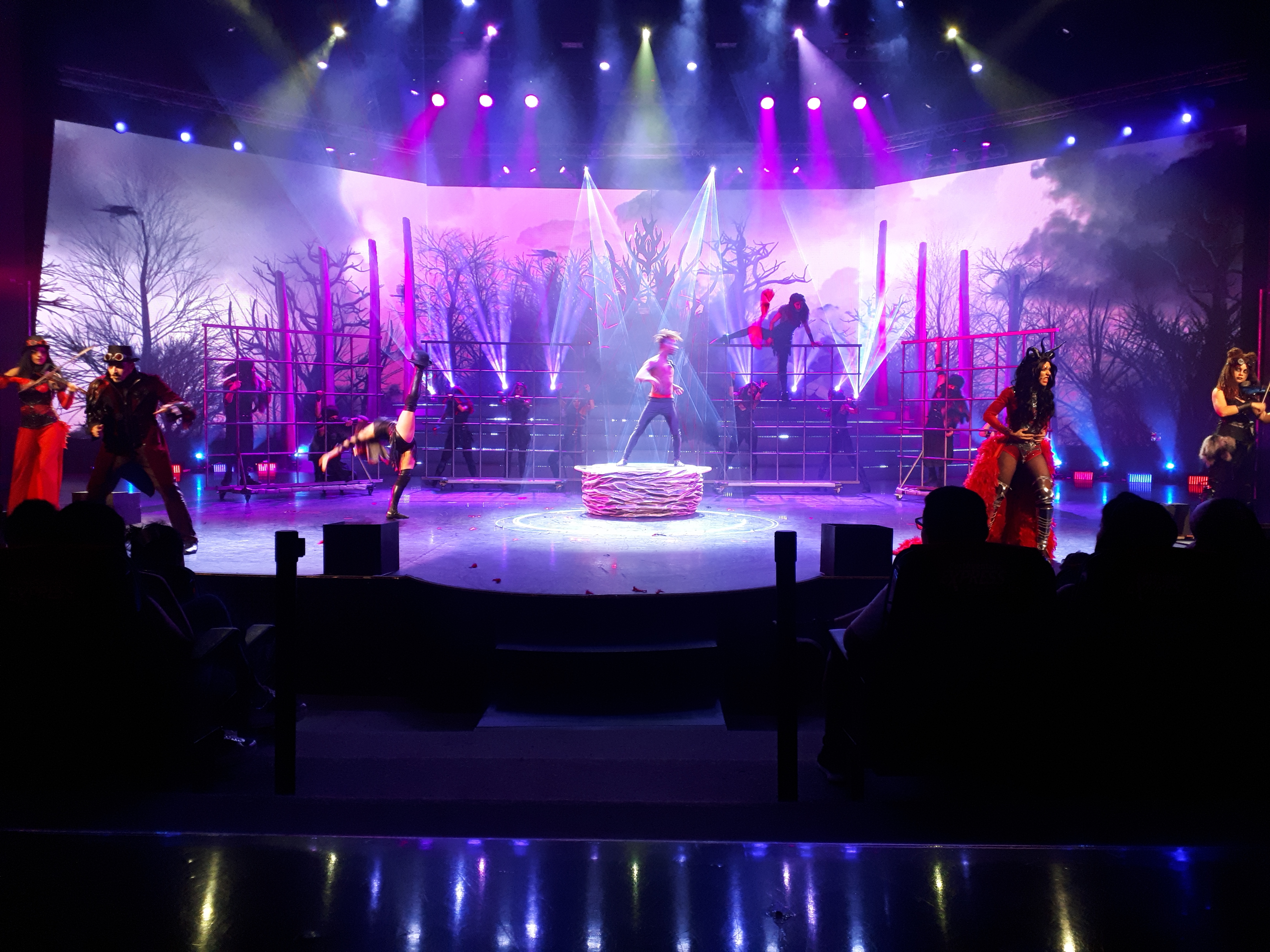 Wirklich sehr gelungen mit live Gesang, 2 Violinen, großer Tanzgruppe und Artisten, die womöglich aus dem benachbarten Cirque du Soleil stammen könnten.