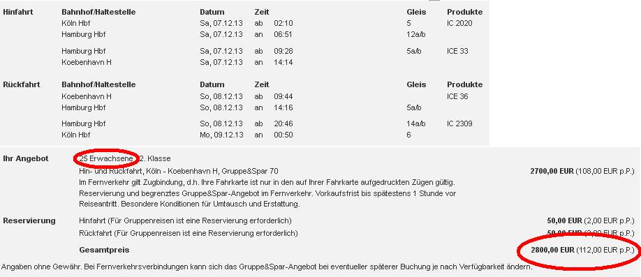 Diese Planung setzt voraus, dass alle in Köln einsteigen, da ist der Zwischentrip mit Hamburg noch nicht eingebaut, keine Stadtrundfahrt, kein Sicherungsschein usw.