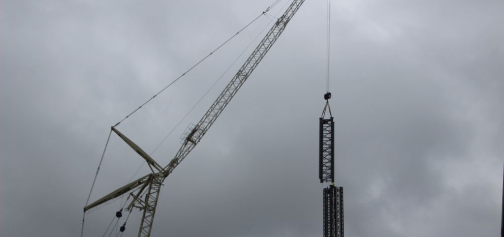 Es werden zwar 10 Elemente, davon aber "nur" 9 mit einer Länge von 12 Metern. Das zehnte ist die Spitze mit den Umlenkrollen sowie den Puffern zum Ausklinken der Gondel. Diese Element wird nicht so hoch sein, was aber auch nicht notwendig ist, denn alleine mit den neun Elementen kommt man auf rund 108 m Höhe.