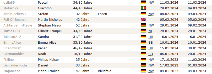 Diese Verweigerungshaltung gegenüber Neuem ist nicht nur seit Jahren fester Bestandteil der onride-DNA, sie ist auch gewissermaßen der "USP" von onride, denn einer der Gründe für die in diesem Thread stattfindende romantische Verklärung ist auch, dass sich das Forum stets synchron mit den Interessen der Gründungsmitglieder entwickelt hat. Würde onride jetzt von "frischem Blut" überrollt - was bei der immer kleiner werdenden Gruppe von Stamm-Usern schneller passieren kann, als denen lieb wäre - kommen wir irgendwann zur Situation eines onride-Treffens im Holiday-Park, bei dem stilbruch, razibo und Tejay abseits an einem Tisch stehen, Currywurst essen und sich auf einem portablen Medion-DVD-Player "European Coaster Thrills" anschauen, während die "Jungspunde" auf der ExGe Shitform-Content für FikFok produzieren.