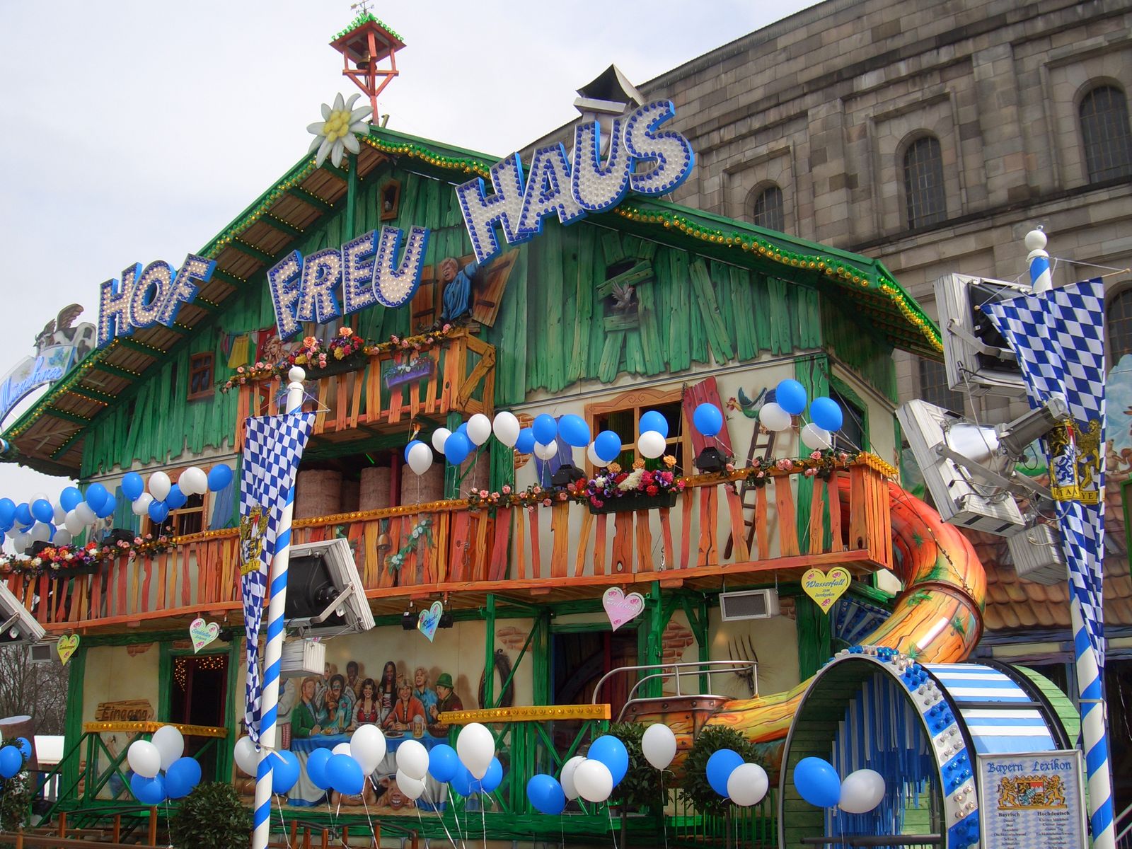 Das Hof Freu Haus ist das beste Funhouse, was ich kenne und ab sofort mein Lieblings-Laufgeschäft. Die Bemalung ist es hervorragend. Ich kenne keine bessere. Ich habe bisher auch noch kein besseres Labyrinth gesehen, als das Spiegellabyrinth im Hof Freu Haus. Viele Effekte kommen völlig unerwartet. Eine wirklich sehr schöne Bemalung, mit vielen VIPs und tollen Motiven, Wasserfontänen, eine tolle Beleuchtung und Lichteffekte, Seifenblasenmaschinen, fetzige bayrische Musik, usw. machen es zu einem Top-Laufgeschäft! Alle Leute die für 2,50€ (Erwachsene) oder 2€ (Kinder) hineingegangen sind, waren begeistert. Das ganze Geschäft wippt nach links und rechts. Ab 19 Uhr bekommt jeder Besucher eine Multispektralbrille (keine Ahnung wie man das schreibt), womit der Almdisco-Parcour zu einem noch tolleren Erlebnis wird. Ich empfehle jeden dort hinein zu gehen. Es lohnt sich! Auf keinen Fall vergleichbar mit den zahlreichen Kinderspielplätzen, wie z.B. Rüths "Happy Family". Die Dietz Laufgeschäfte sind und bleiben immer noch die besten. Und Distel bleibt Distel! Der beste und freundlichste Schaustellerbetrieb wo gibbet.