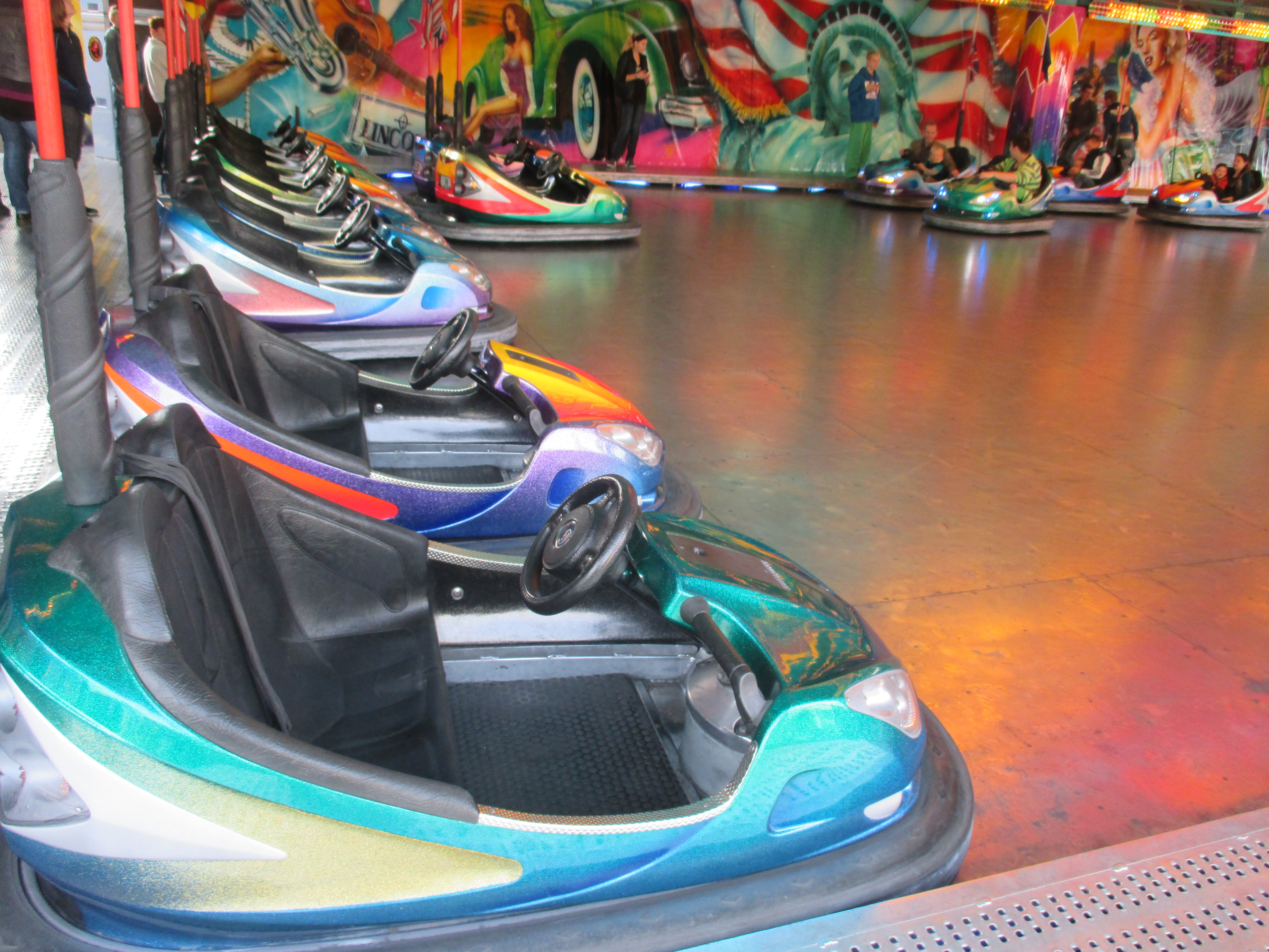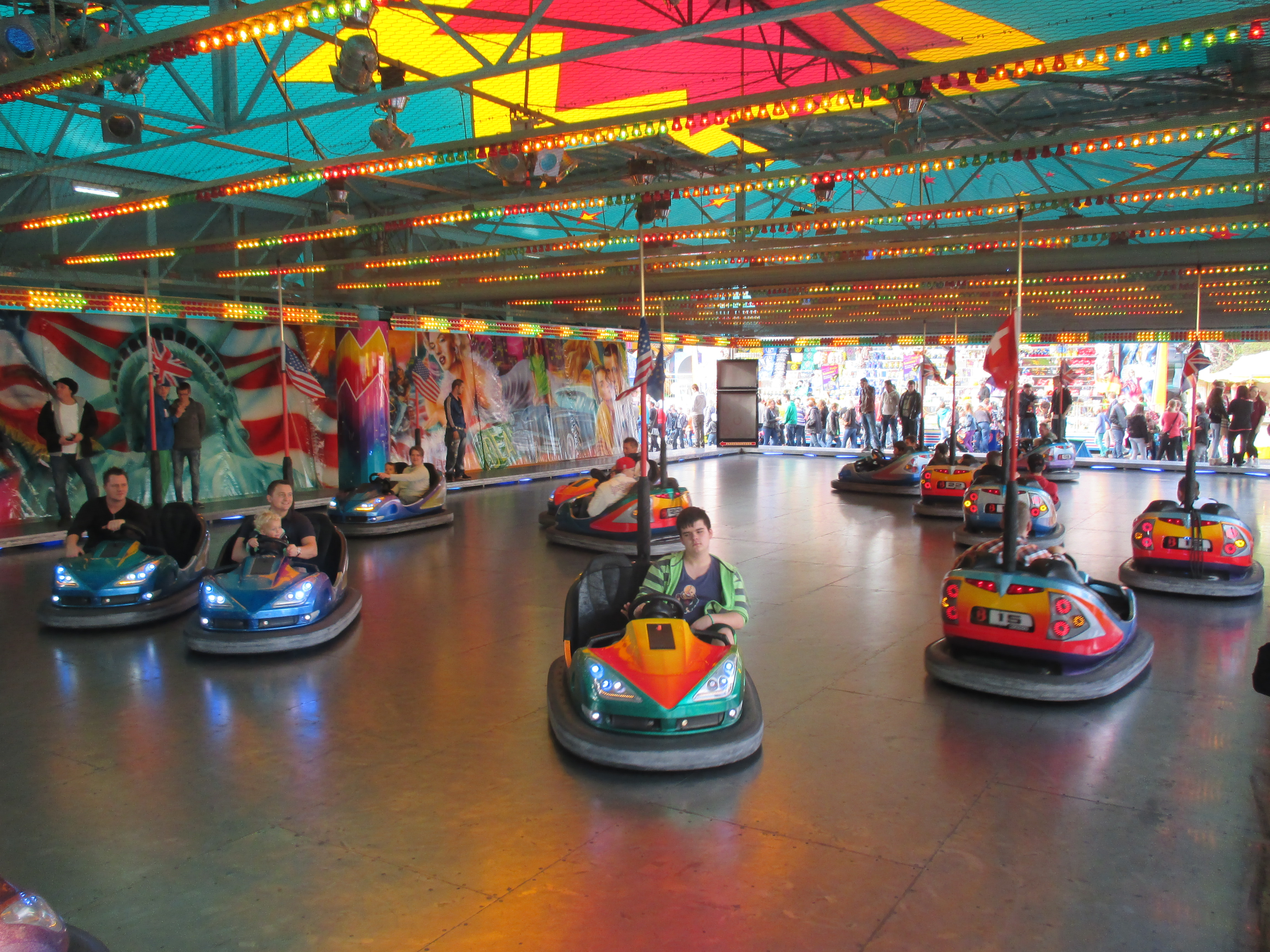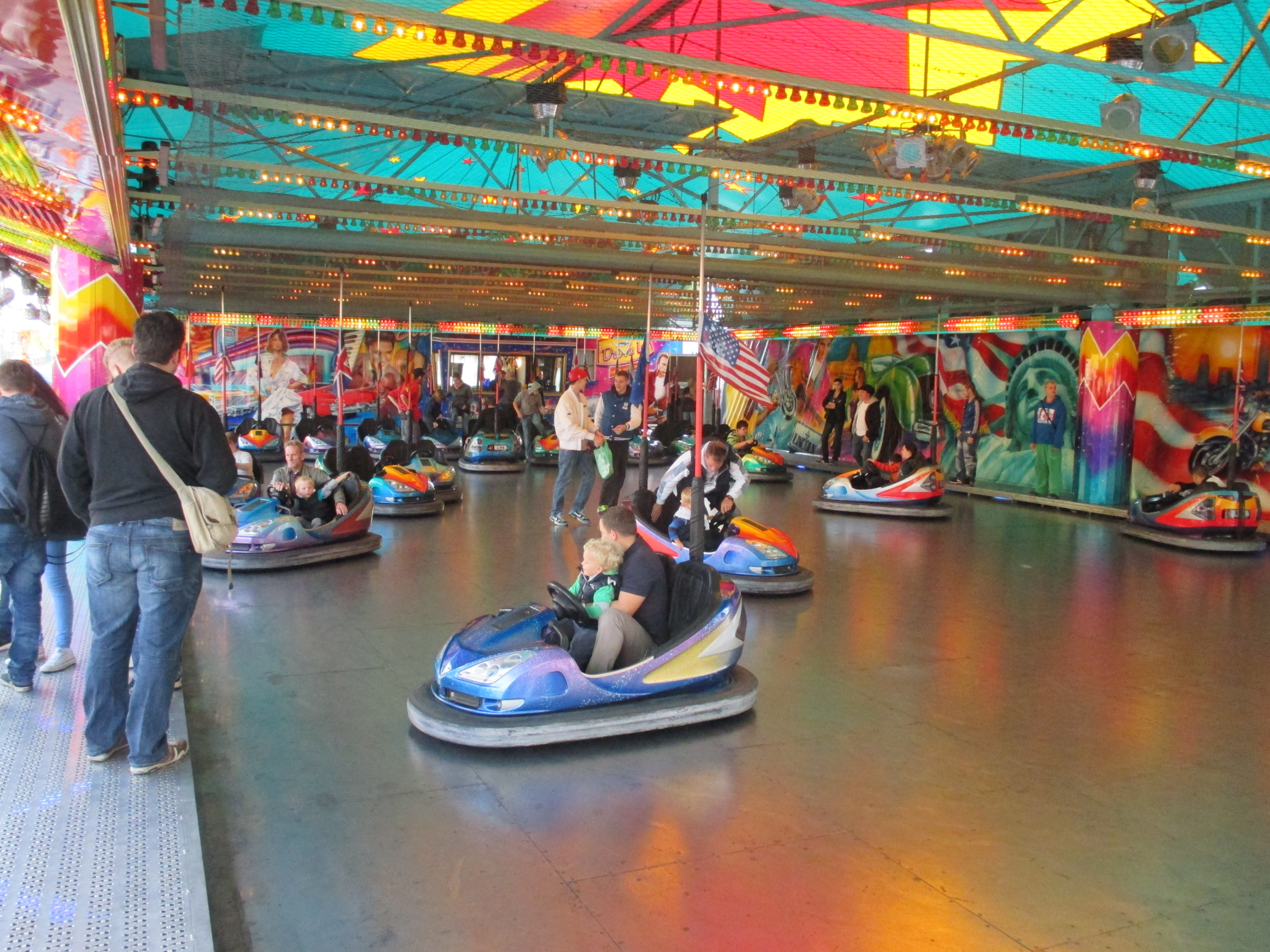 Dieser Autoskooter präsentiert sich in der häufig zu findenden US-Thematisierung.