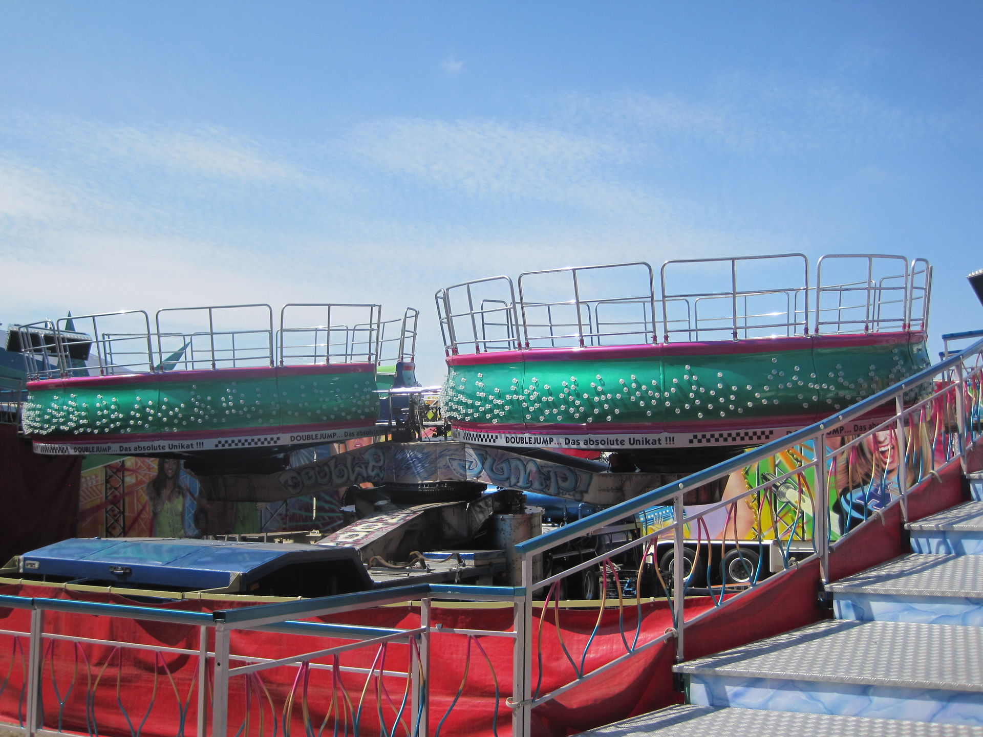 Der Double Jump war eine italienische Weiterentwicklung des erfolgreichen Hopsers. Der Hersteller SDC verwendete einfach, um die Kapazität des beliebten Karussells zu steigern, zwei Fahrgastgondeln, die um eine Mitte seperat auch mit verschiedenen Geschwindigkeiten kreisen konnten.