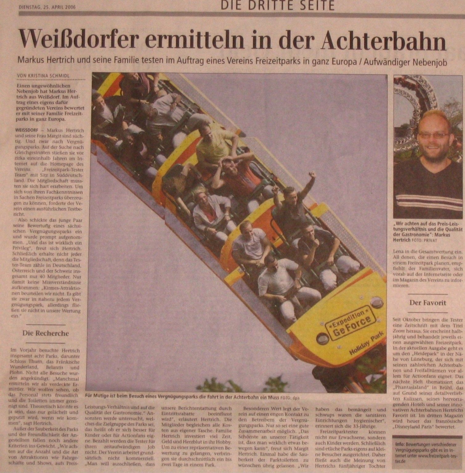 In der Regionalzeitung war bei uns ein Bericht über Freizeitparktester, den möchte ich euch nicht vorenthalten. Viel Spaß beim lesen.