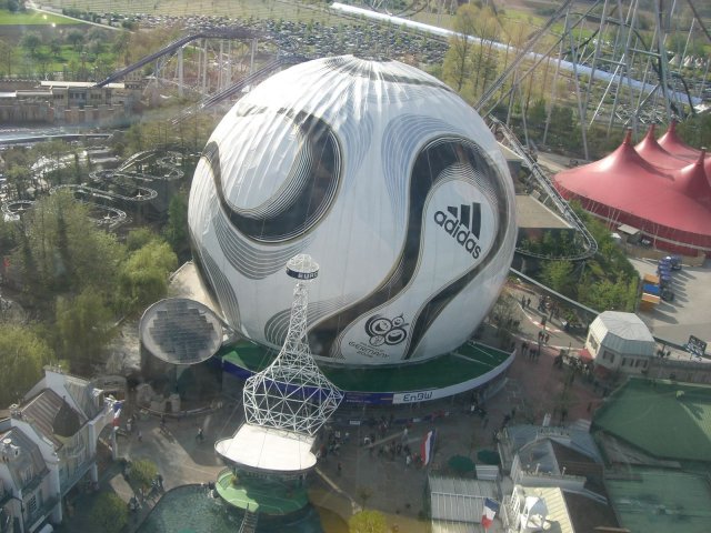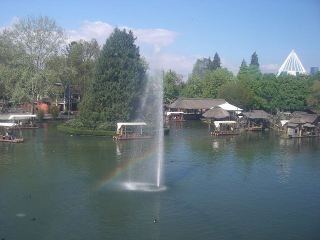 Der Brunnen im Endlischen Themenbereich und im Hintergrund die Arena of Football