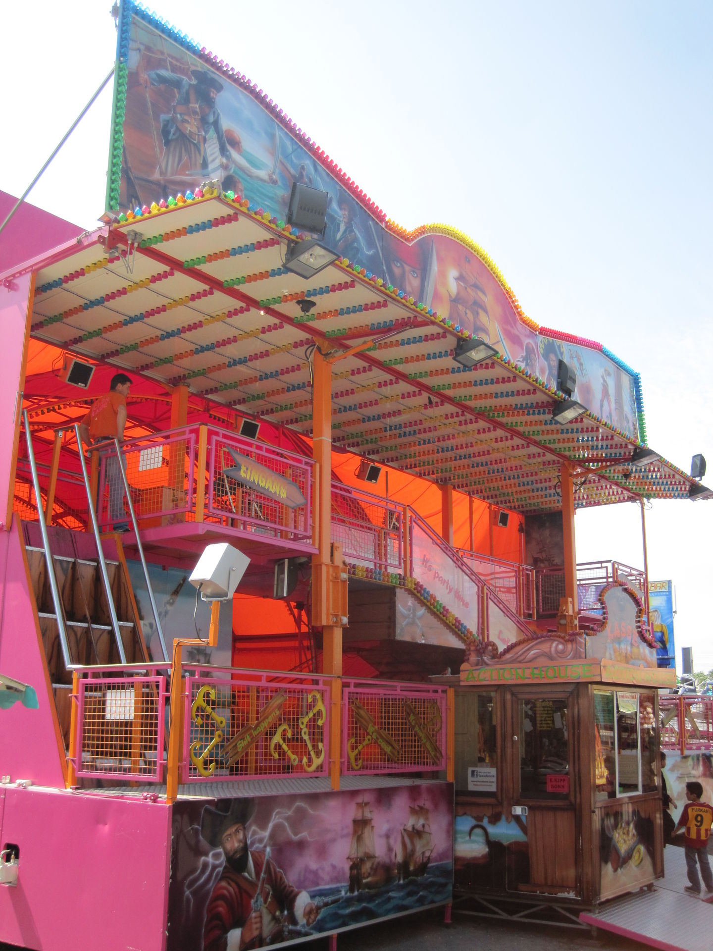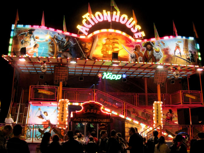 Ich war dieses Jahr in Bad Kreuznach im Action House. Ich finde, das Action House gehört zu einem der besten Funhäuser Deutschland. Es machte Total Spaß. Besonders die Laufbänder sind Lustig, bei denen habe ich mich fast auf die Fr***e gelegt. Ein sehr schönes Spaßhaus, ich würde mich über weitere Cakewalks in Deutschland freuen. Gerne wieder. Preis: 2,50 Euro für zwei Durchgänge. Das Action House ist zwischen 40 und 45 Jahre alt. Vor einigen Jahren wurde es von einem holländischen Schausteller aufgekauft und zur Reiseversion umgebaut. Als Kipp es kaufte, mußte die Anlage, entsprechend den Auflagen des deutschen TÜV, nochmals umgebaut werden. Die holländische Reiseversion wurde vom deutschen TÜV nicht abgenommen. Das wundert mich aber mit dem TÜV, weil ja, wie das Action House noch unter Hoefnagels-Denies lief, ja auch einige Plätze in Deutschland angefahren worden sind. Da lief das Geschäft ja auch noch unter den Holländischen Sicherheitsvorkehrungen, Oder? Das Älter sieht man dem Action House aber gar nicht an, finde ich S.