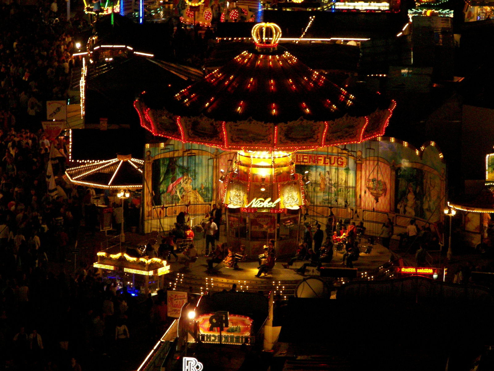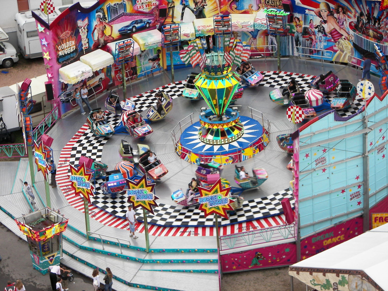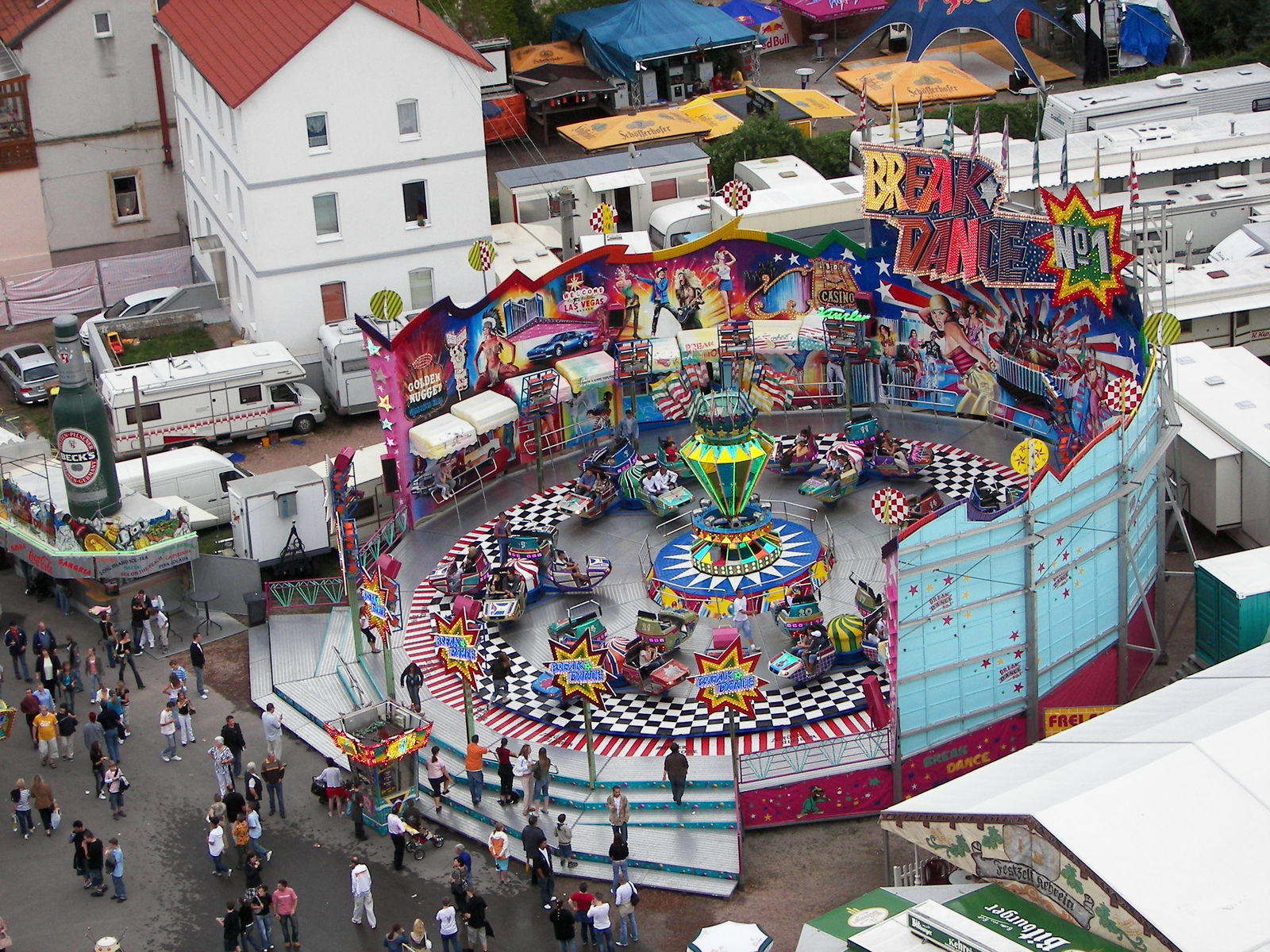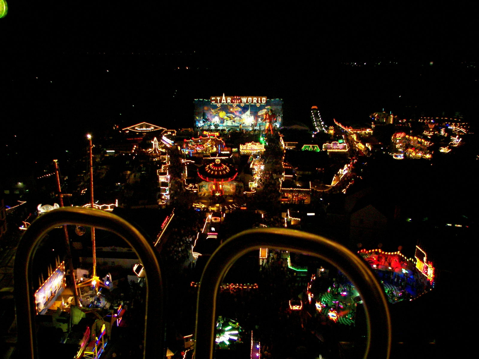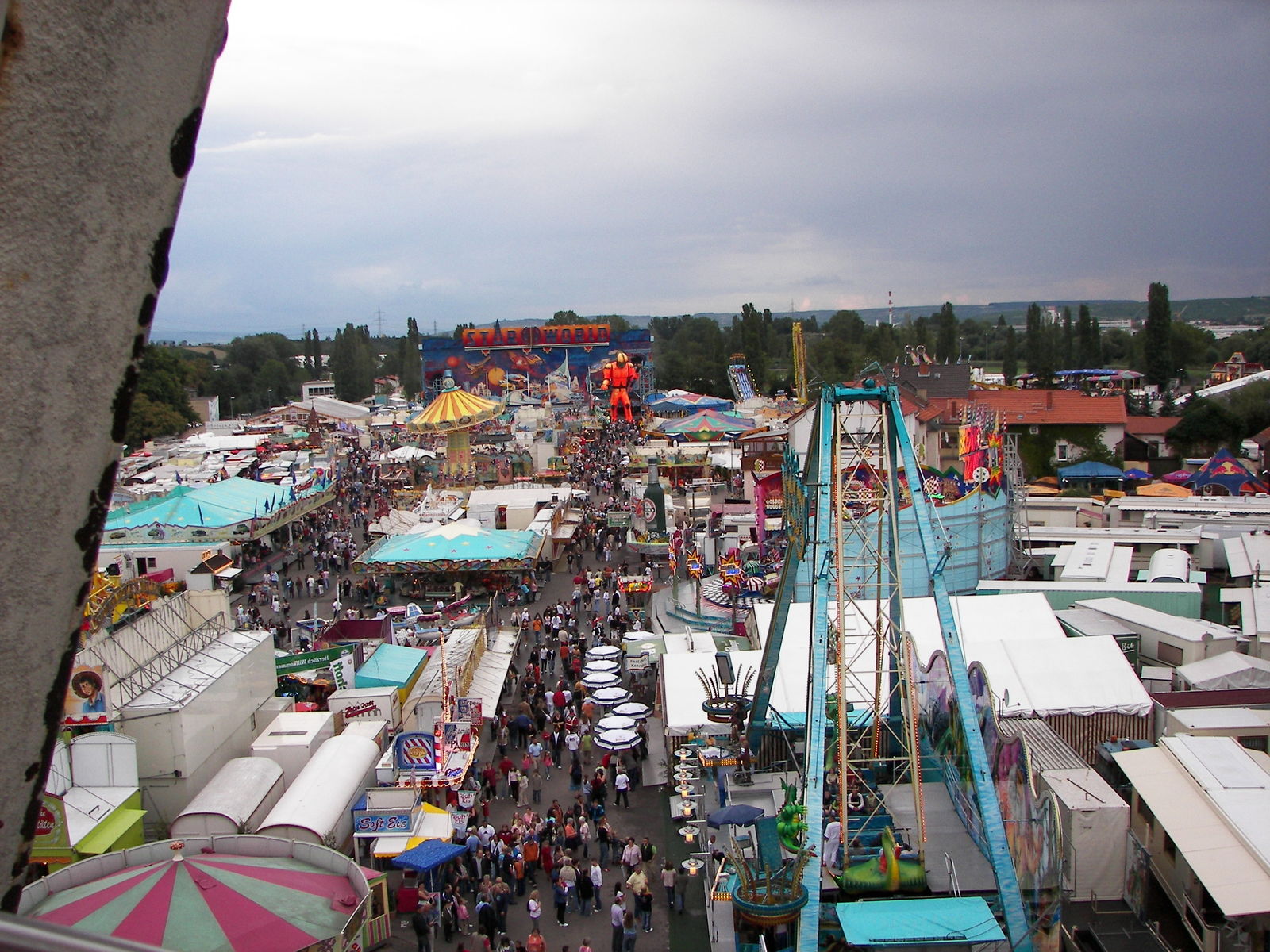 Das Europa Rad von Kipp, mit seinen 55 Metern, ist ideal, um einen Festplatz mit seinen Attraktionen, aus der Vogelperspektive einzufangen.