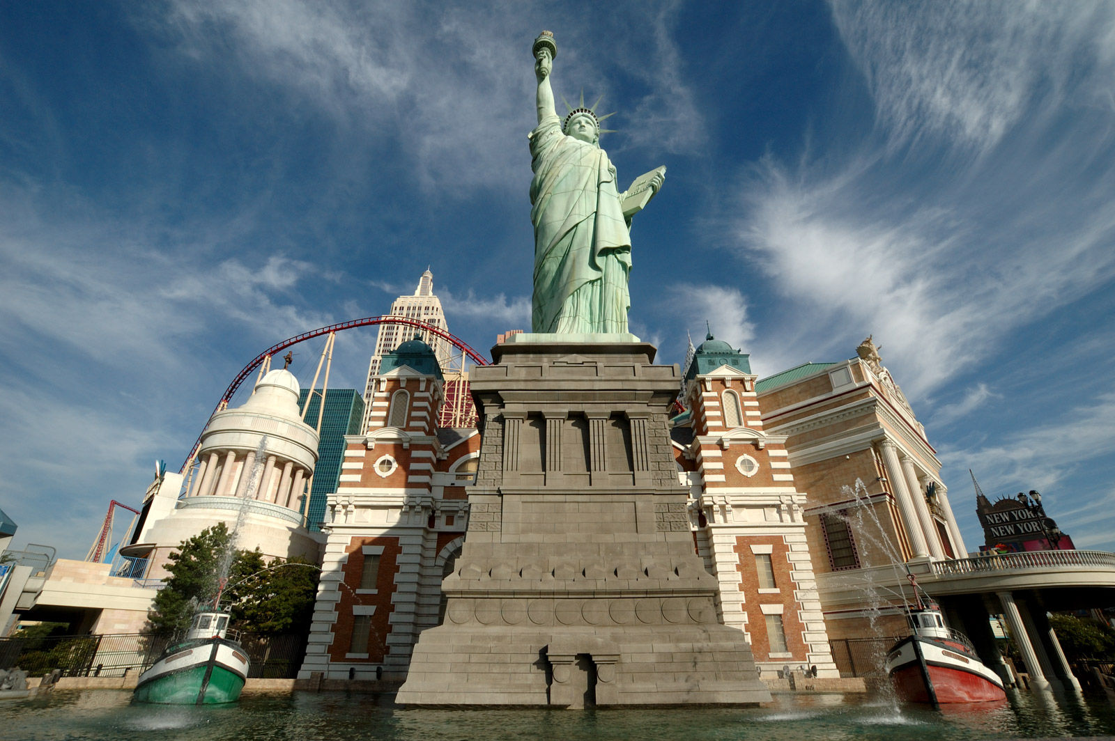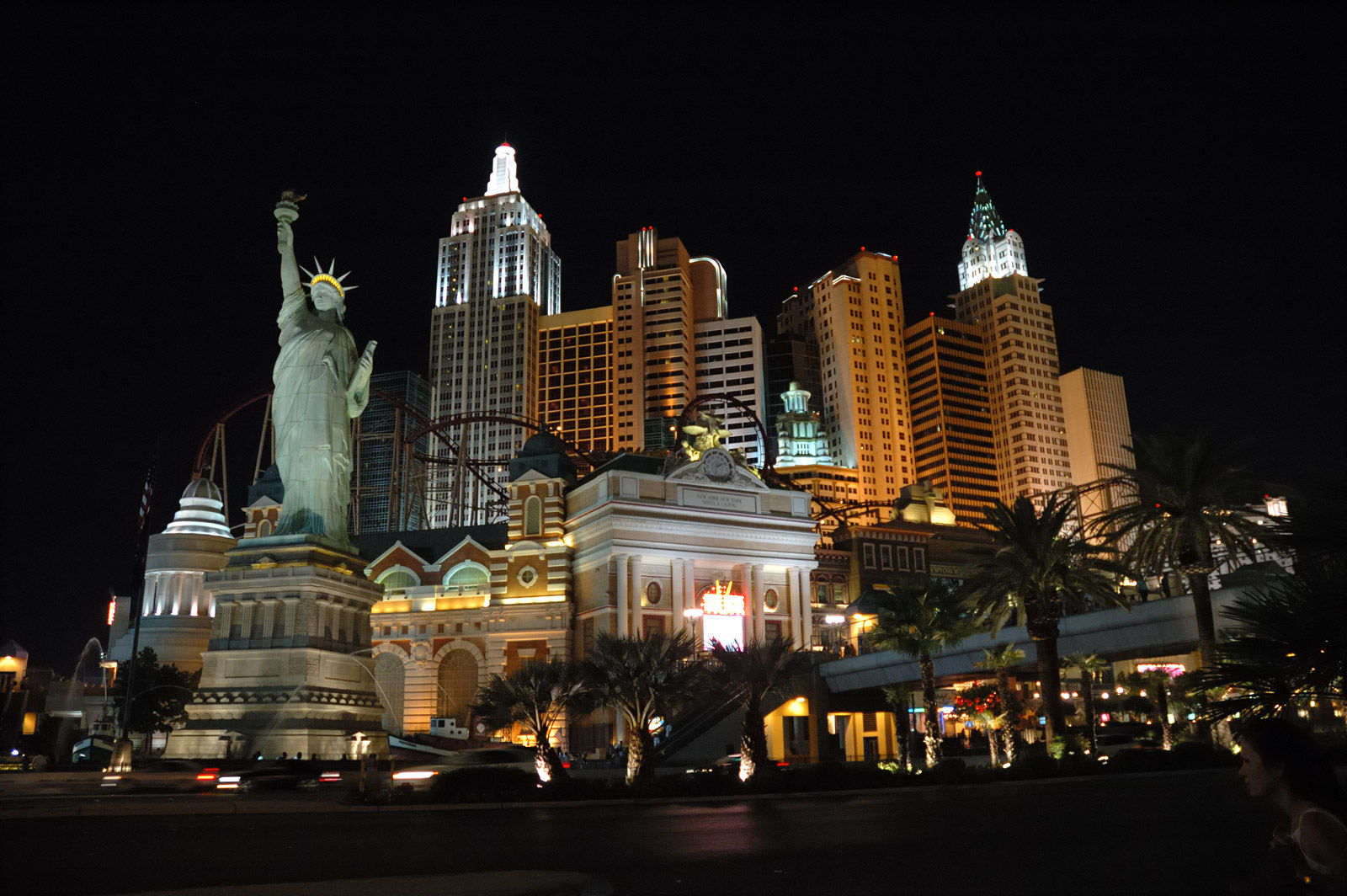 Grüße aus dem lauten, schrillen Las Vegas. Jetzt muss ich meine $10,99 Internet-Flatrate (für 24h) doch einmal ausreizen und euch ein wenig von dieser Stadt berichten. Was gibt es zu sagen? Es ist laut, heiß, staubig und neben Gambling, Extrem-Fressing und Sightseeing geht es hier nur um Sex-Sex-Sex (dazu später mehr). An Credits gibt es ein paar zu holen, leider ist der High-Roller auf dem Stratosphere geschlossen und für Speed beim Nascar Cafe am Sahara war ich -- offen gestanden -- zu geizig (da habe ich die $10 doch eher in den Internet-Zugang gesteckt). So bleibt denn nur der infame Manhattan-Express am New York New York Hotel. Diese Bahn ist so etwas von Aua!, dass sie den zweiten Platz meiner Coaster-Worst-10 im Sturm erobert hat (ganz so übel wie Pepsi Max in der letzen Reihe war es denn doch nicht).
