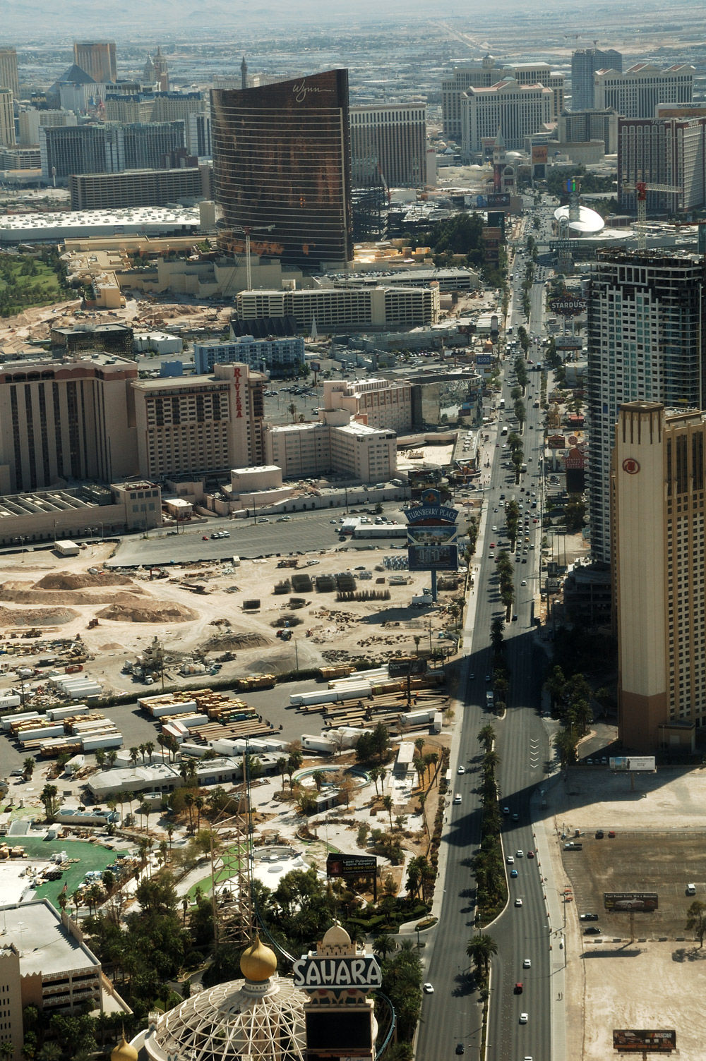 Vom Stratosphere Tower hat man einen schönen Blick über den Las Vegas Strip mit den ganzen Hotels, wie dem Bellagio mit den Wasserspielen, dem New York New York mit dem Manhattan Express, dem Mirage mit stündlichem Vulkanausbruch und dem Treasure Islands mit der Piratenshow, um nur einige Beispiele zu nennen.