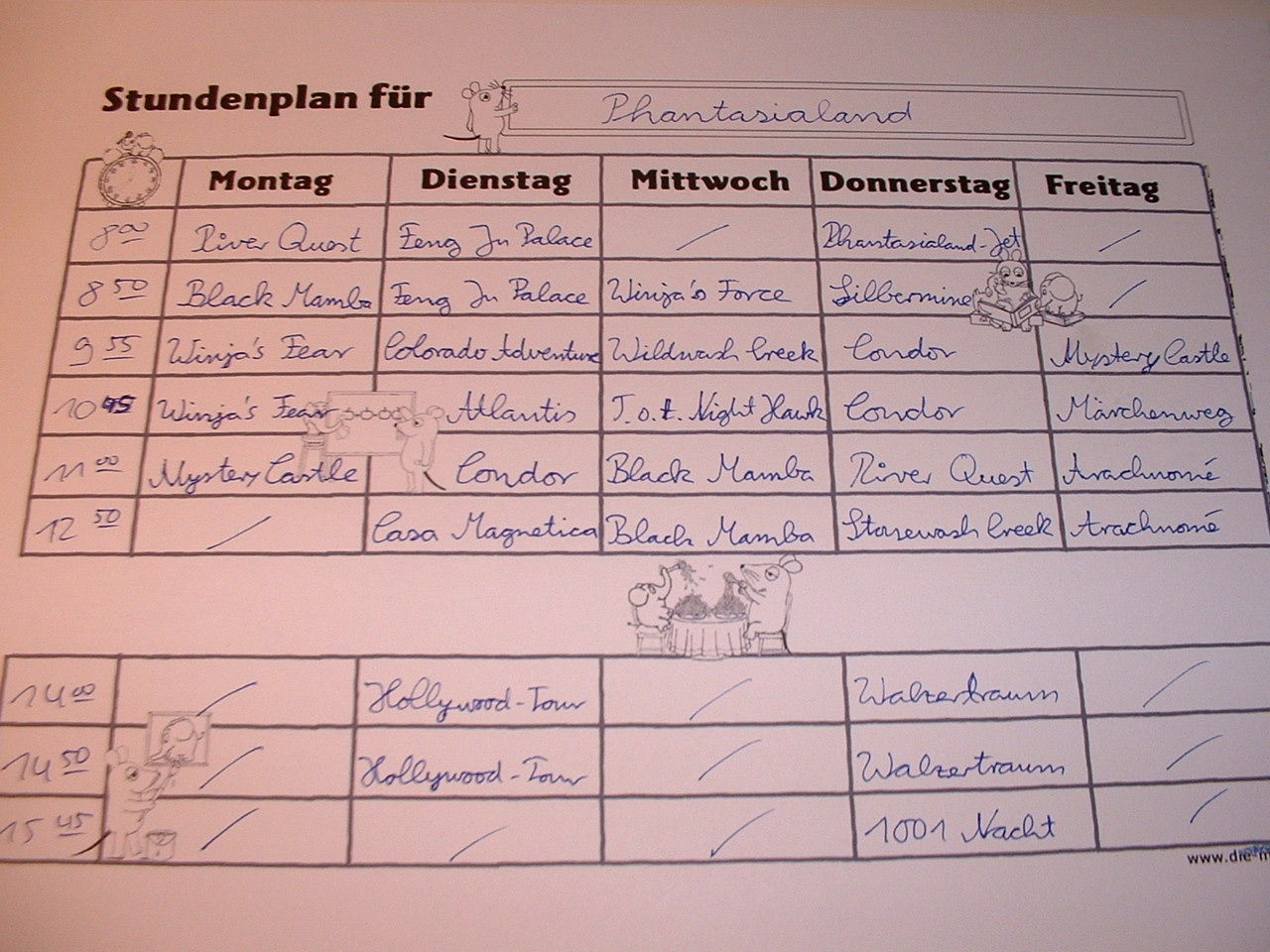 Wie wär's mit einem selbstgemachten Freizeitpark-Stundenplan? Ist doch viel schöner! S