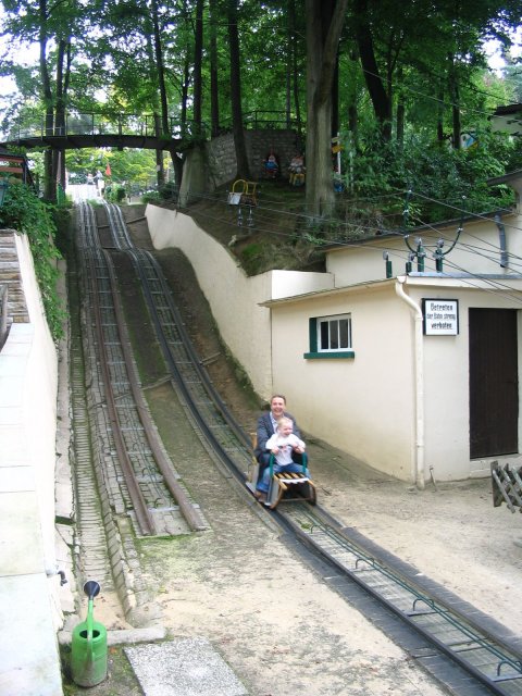 Schnell zu finden lockt am Berghang Ausflugsgastronomie, Spielplatz, Märchenwald, Eisenbahn, Kinderkarts, Darkride "Reise um die Welt" und natürlich die Rodelbahn.