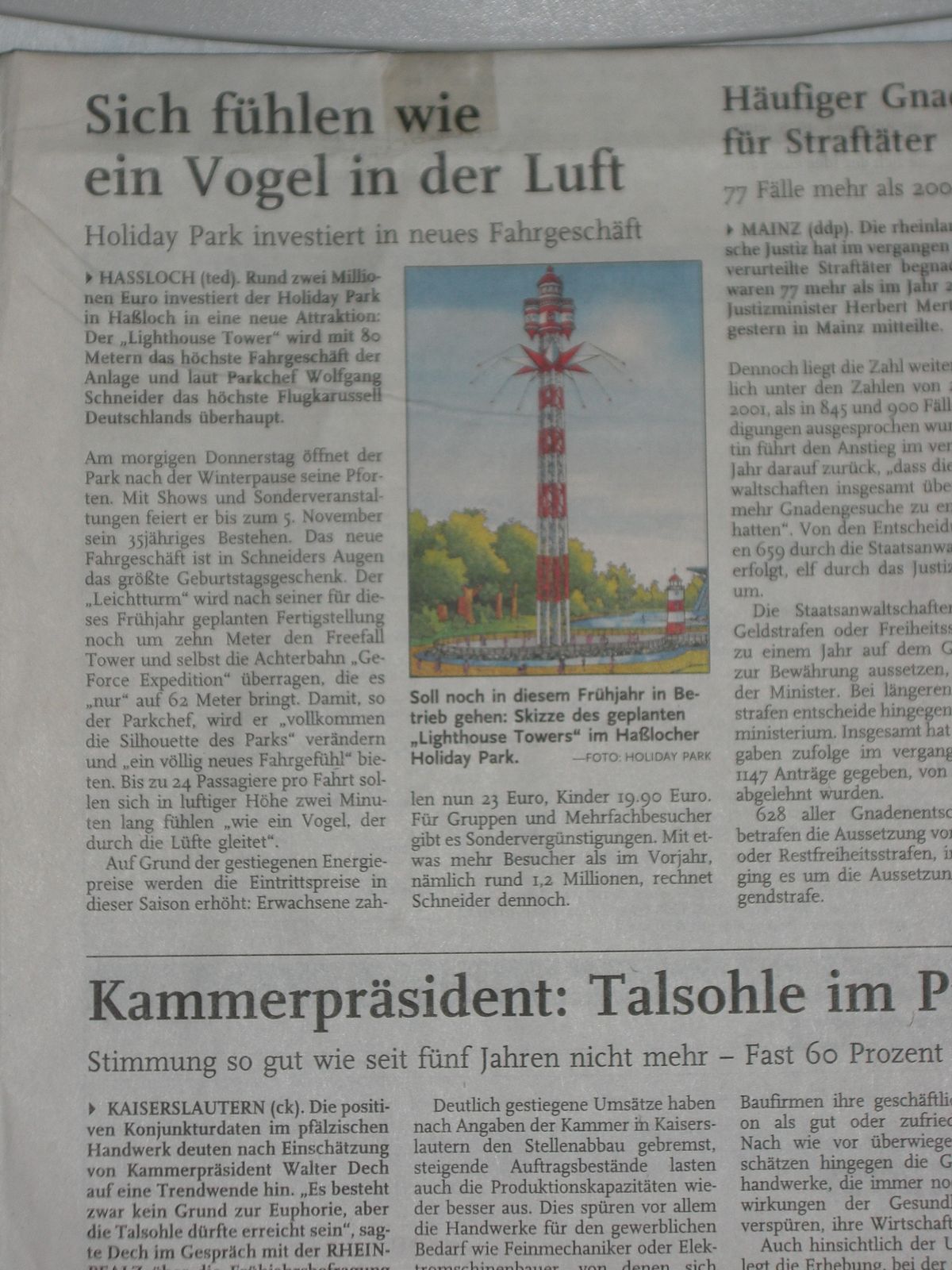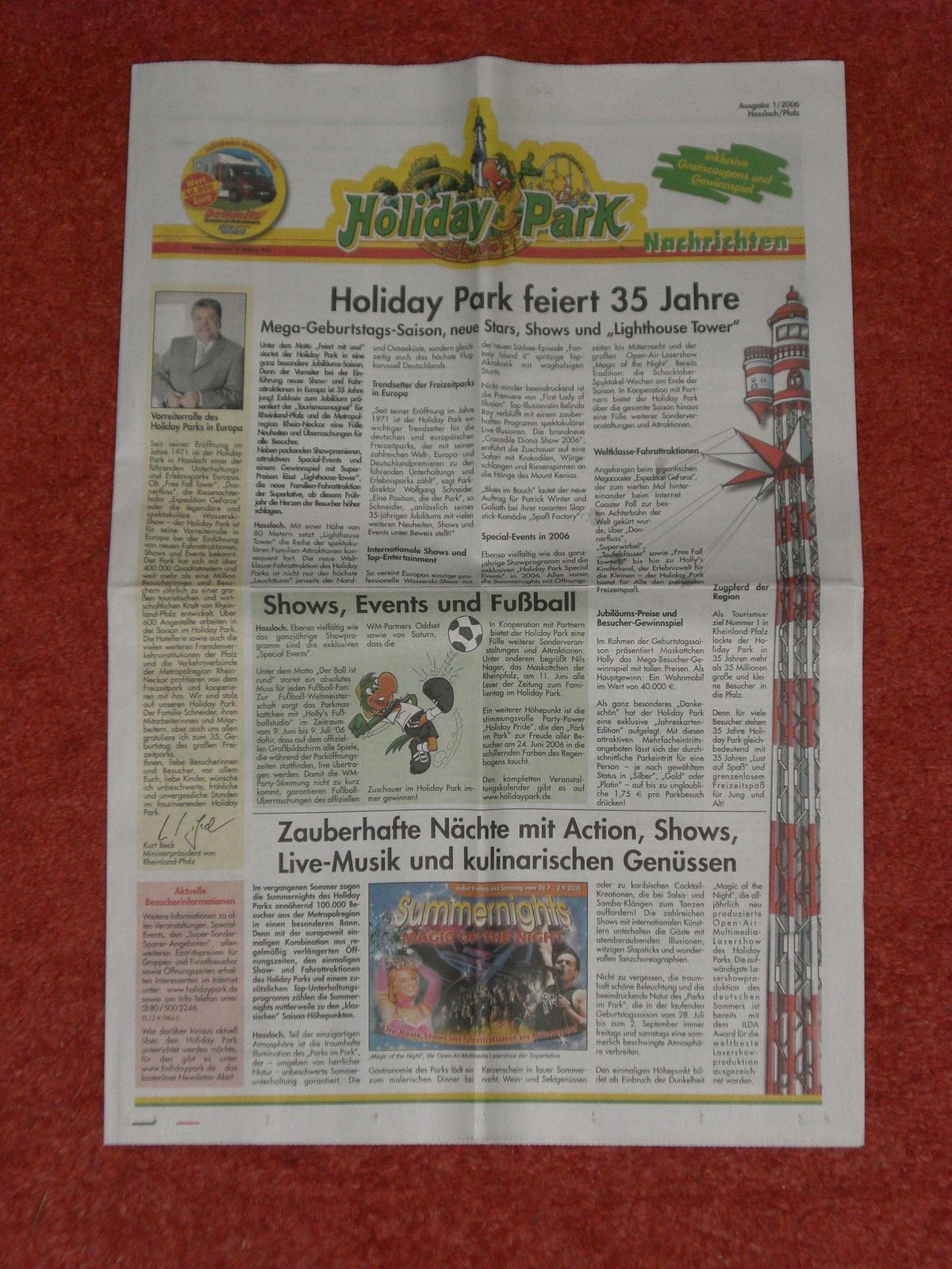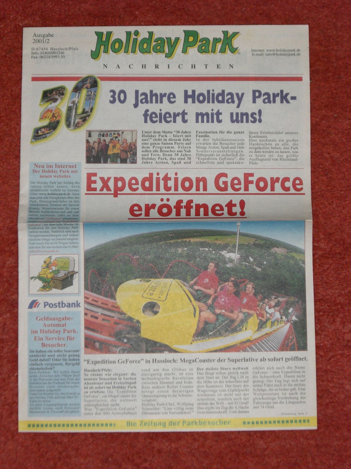 Habe noch einen großen über den EP, 2 über den HoPa, einer davon über den Park allgemein, ein andere nimmt die EGF als Beispiel für irgendwelche Gefahren beim Fahren, dann wäre da noch einer über die Eröffnung von Kingda Ka und ein Bild von Colossos sammt Untertitel zum Bild, ist aber kein Artikel, achja, dann wäre da noch einer zum HePa für die Saison 2006, in dem steht etwas über Colossos, die zu dem Zeitpunkt 5 Jahre alt wird und gerade neu berädert wurde, weshalb sie schneller wurde.