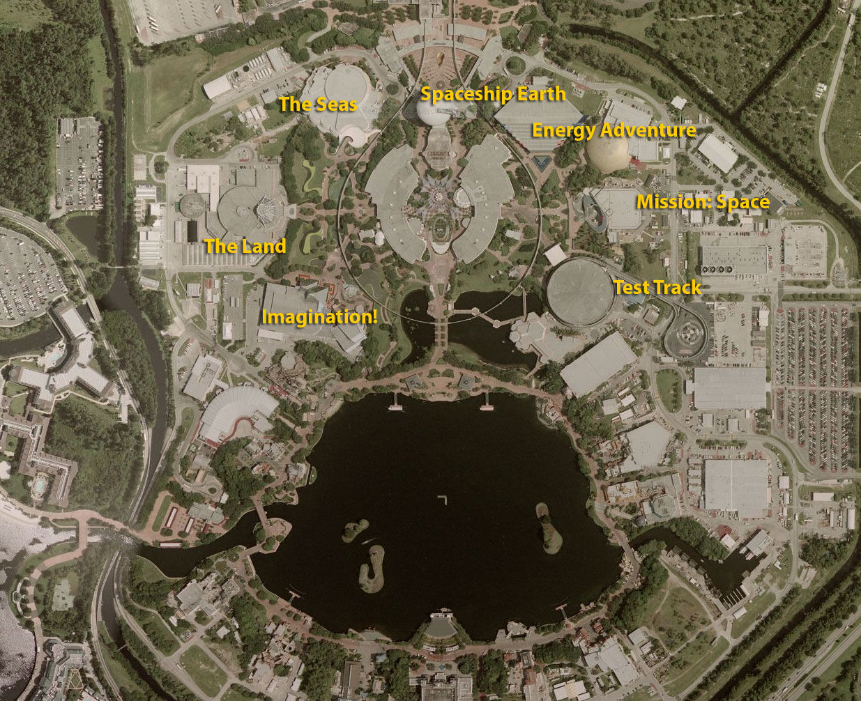 Epcot selbst wurde als Themenpark 1982 nach drei Jahren Bauzeit eröffnet. Eigentlich besteht Ecpot aus zwei Parks: Future World und World Showcase. Der erste Bereich besteht aus einer Reihe von Pavillions, die Zukunftsvisionen, mit einem unverkennbaren 80er-Jahre-Charme präsentieren, im World Showcase präsentieren sich die Nationen Mexiko, Norwegen, China, Deutschland, Italien, Japan, Marokko, Frankreich, England und Kanada. Dort findet auch die allabendliche Feuerwerksshow "IllumiNations: Reflections on Earth" statt.