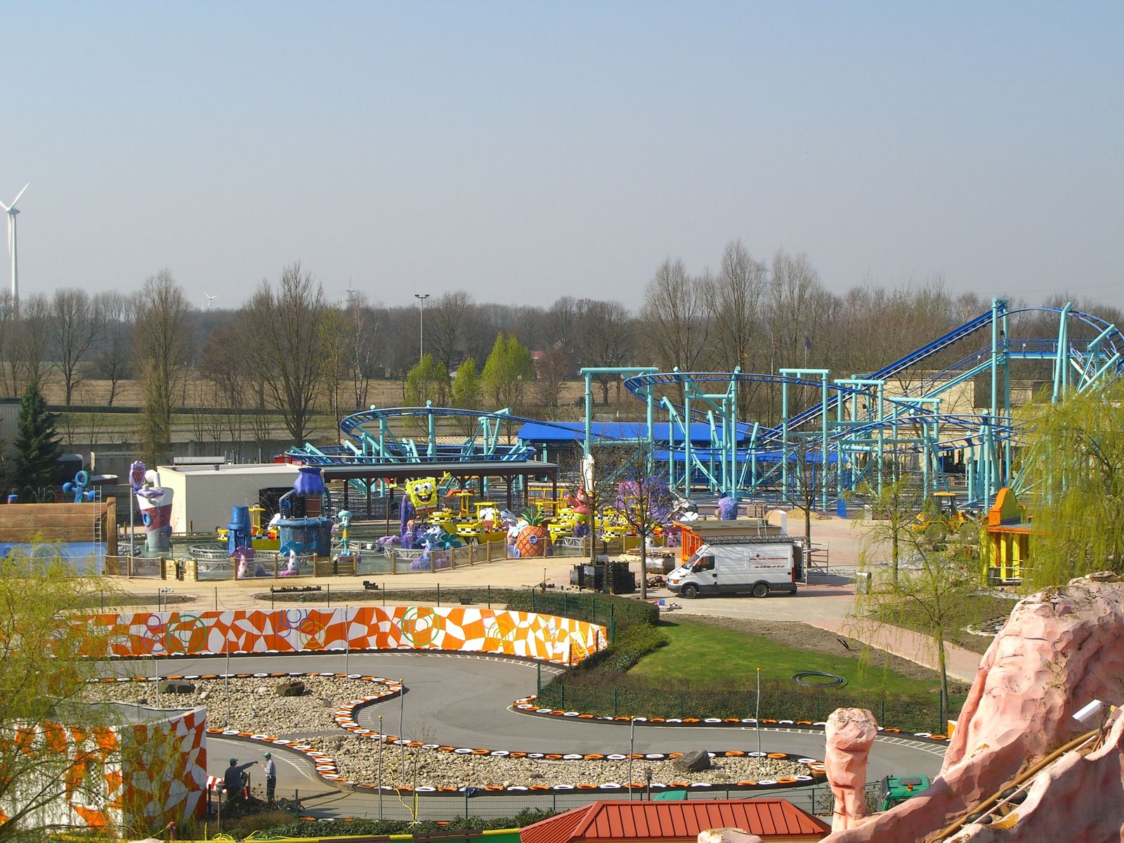 Der SongeBob SplashBash ist richtig toll gethemt und macht einen ähnlich guten und großen Eindruck wie der in Holland - obwohl die hiesige Version kleiner sein soll, was aber gar nicht auffällt. 153 Meter Strecke schlängeln sich durch Figuren und Theming rund um Sponge Bob. Auf den 8 Fahrzeugen sind je 4 Kanonen installiert. Wie auch in Holland sind eine Reihe von Kanonen rund um die Strecke verteilt, 7 in der Zahl, so dass niemand dem Nass entgehen kann, da diese teilweise richtig nah an der Strecke liegen. Auf der Strecke selber befinden sich 11 Fontänen und 6 interaktive Elemente- jetzt muss nur noch das Wetter mitspielen.