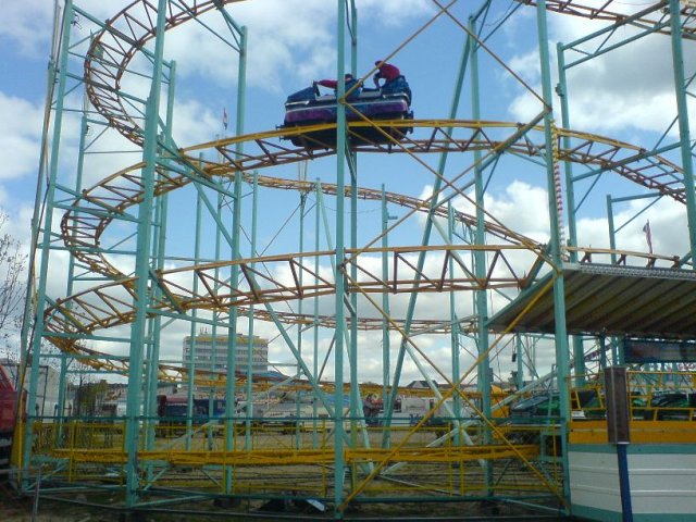 DRACHENBAHN: Dieses kleine Gerät drehte zwar nicht sooo auf wie die gleiche Bahn in Norwegen, jedoch habe ich mir des öfteren mein Bein gegen die Chais gehauen, die Helix hat ja doch ein paar Kräfte. *Hehe* Muß man sich aber auch kein 2tes mal mehr antun.