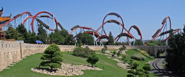 Airtime wieder in den Sitz gleitet, kommt bei Dragon Khan nicht mal ansatzweise das Gefühl von Schwerelosigkeit auf, das ist aber nicht negativ gemeint, es ist einfach was komplett anderes. So schnell wie man aus dem Sitz gerissen wird, und eine waagerechte Drehung um 360° absolviert, wird man auch schon wieder in die Schale gepresst um der