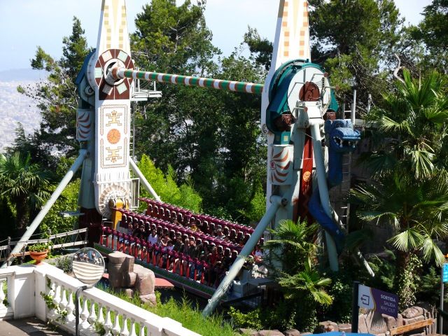 Und dieses Gerät steht davor. Sieht aus, wie ein Propeller, ist aber ein riesiges Pendel. Man wird auf Höhe gebracht und dann ausgeklinkt, wodurch man längere Zeit pendelte. Sah schon interessant aus, aber die Wartezeit von fast 90 Minuten war es uns dann doch nicht wert. Viel Zeit hatten wir für Tibidabo eh nicht eingeplant.