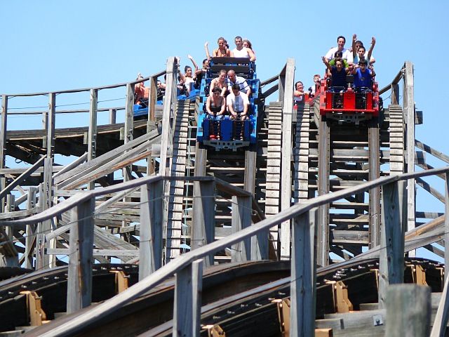 Am Parkeingang die Tickets besorgt und gleich zum "Propeller of Death". Diese etwa 1920 gebaute Attraktion hat es wahrlich in sich. Sieht aus, wie ein Kirmespropeller, nur fährt dieser eher im Riesenradtempo, was dem Thrill aber keinen Abbruch tat. Ich glaube, ich hatte in letzter Zeit selten so Muffensausen, wie auf diesem Gerät...