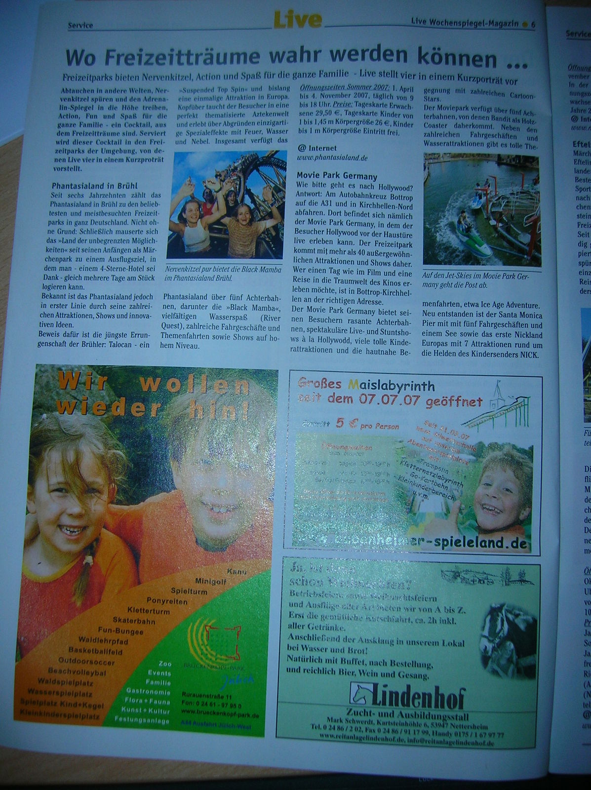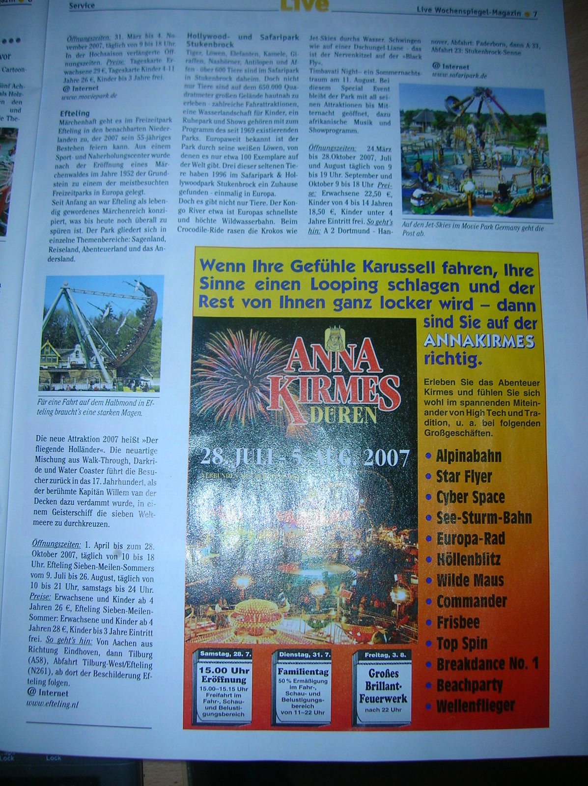 Hallo, in der Live (Ka, was das für eine komische Zeitung ist ) ist ein kleiner Bericht über Freizeitparks: