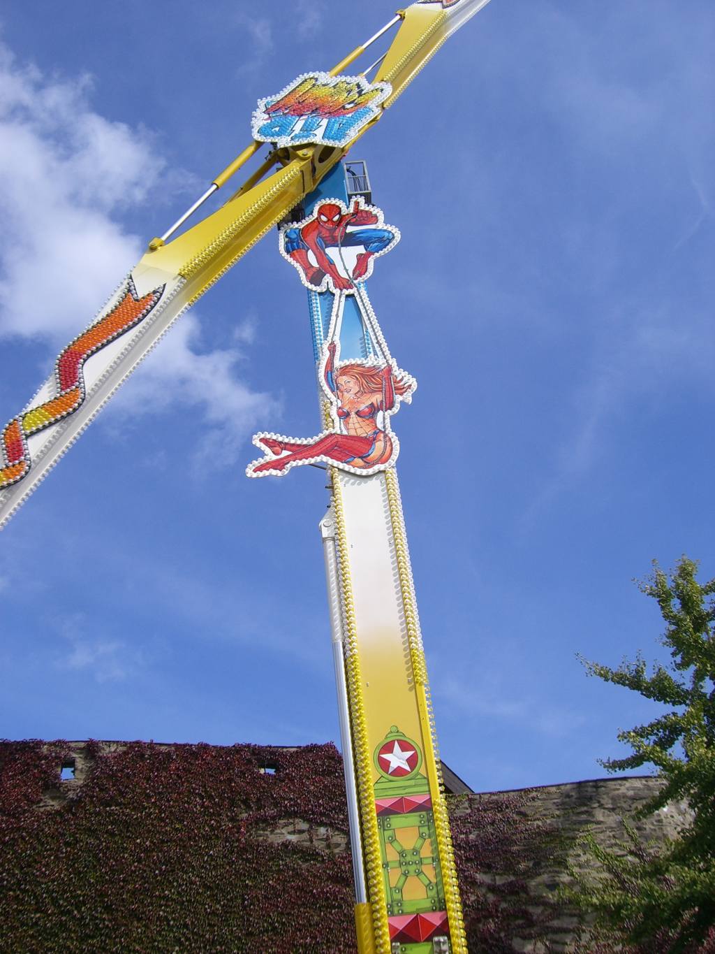 Die Attraktion Links vom Auto Scooter wechselt wie gesagt. Zu Kirmes vor einen Monat (die dieses Jahr in meinen Augen extrem schlecht war) standen da nur 4 Trampoline rum. Diesmal war es wenigstens wieder ein Fahrgeschäft: