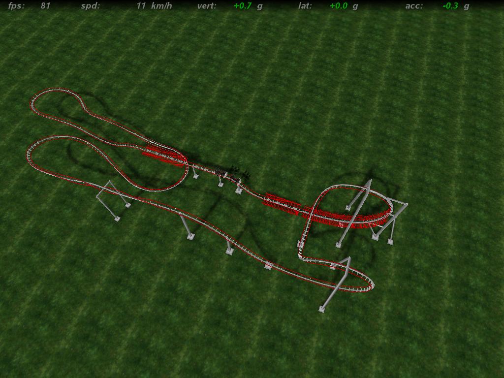 Also für mich ist das keine "heartline roll". die Schienenebene bleibt immer die selbe und der Wagen wird um die Schiene gedreht und nicht der Gast um sein Herz. Wenn die Schienen den Verlauf der Herzlinie und umgekehrt hätten, dann wäre es eine "heartline roll"...So ist es eine "lateral roll", denn die Kräfte sind nicht wirklich schön...der Rest des Tracks ist auch nicht wiklich smooth, einige Bankingfehler sind vorhanden und auch in den Kurven sind einige böse Kräfte am Werk.