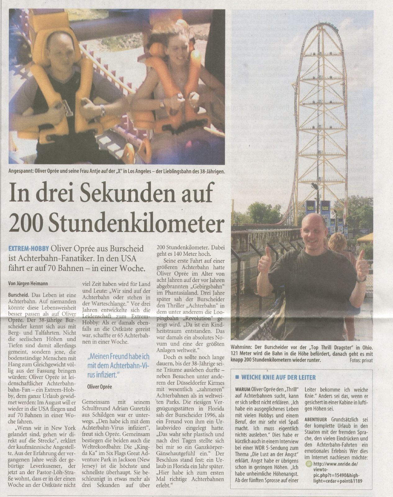 Bereits in der Anmoderation wurden Achterbahnen und andere "Extrem-Hobbys" erwähnt und die Hörer wurden aufgerufen, sich doch zu beteiligen und zu schildern, auf welche Art und Weise sie sich den "Kick" holen würden. Zunächst habe ich nur zugehört und obwohl häufig von Achterbahnen gesprochen wurde, meldete sich niemand zu dem Thema.