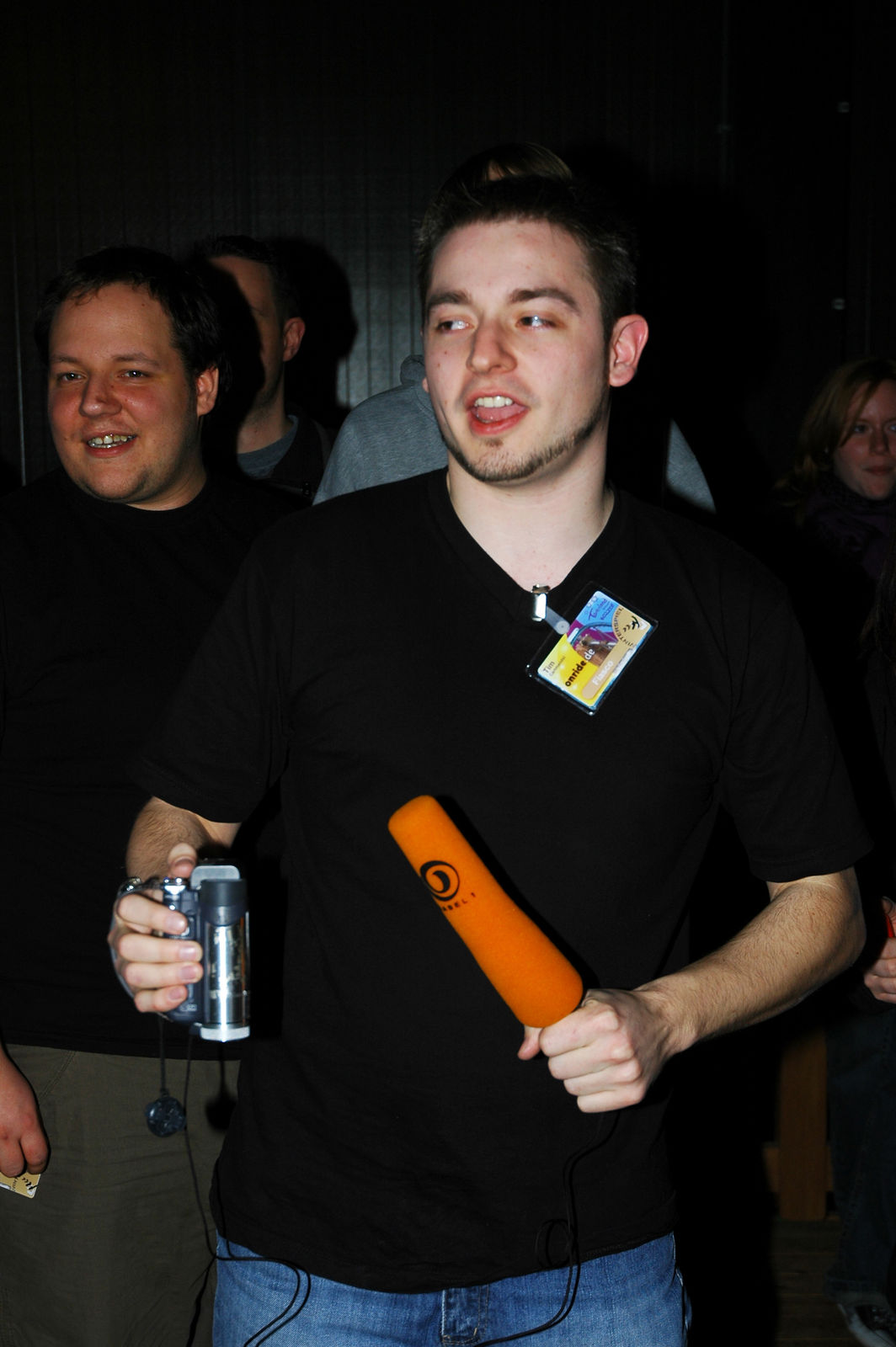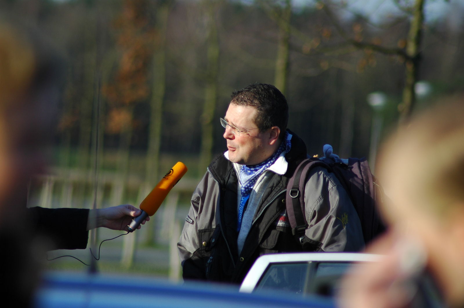kaum aus dem auto gesztiegen ist auch shcon das Sport TV Team von KAbel 1 unterwegs