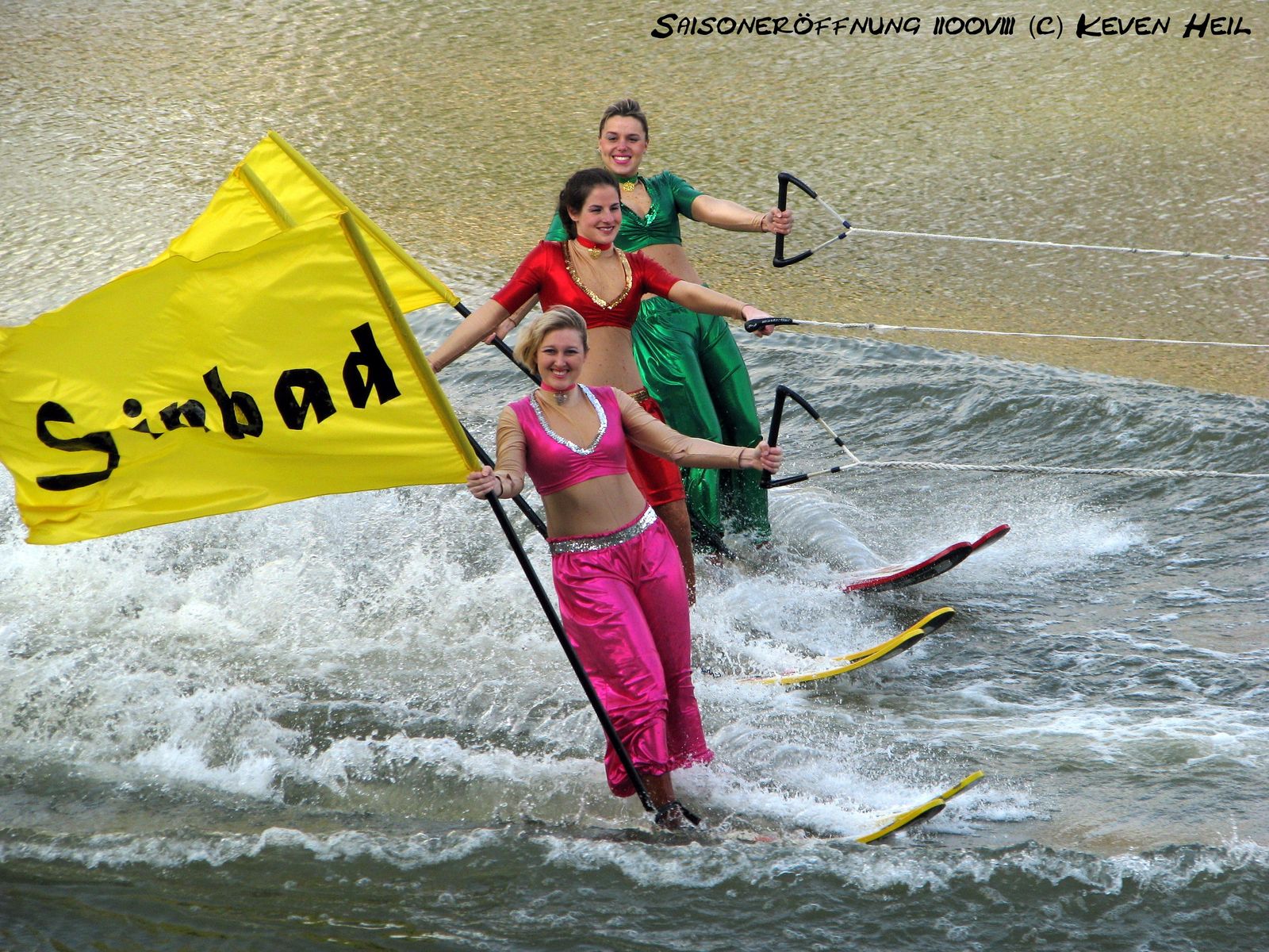 Vielleicht hat man aber auch an die englischsprachigen Zuschauer gedacht oder die Wasserskitruppe hat die Flaggen aus den USA mitgebracht, wo "Sinbad" ebenfalls die korrekte Schreibweise ist.