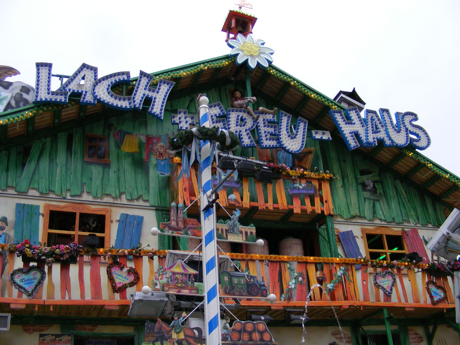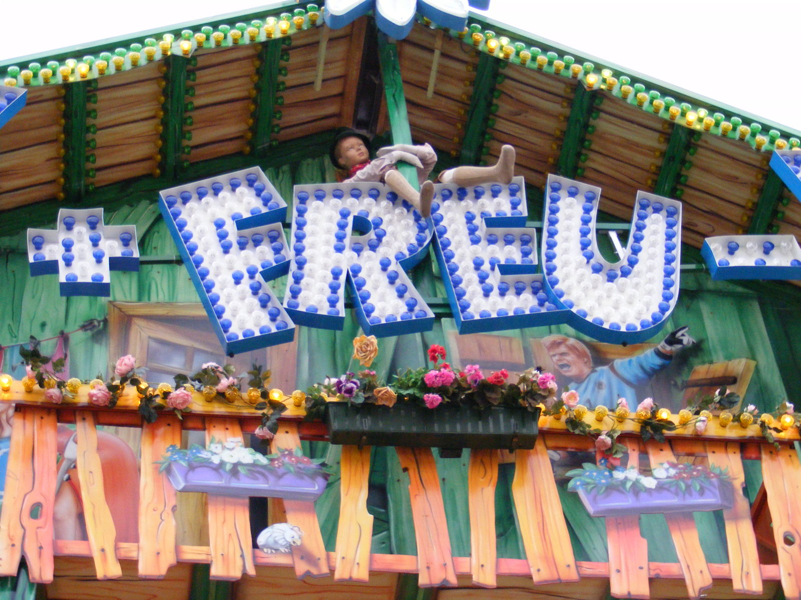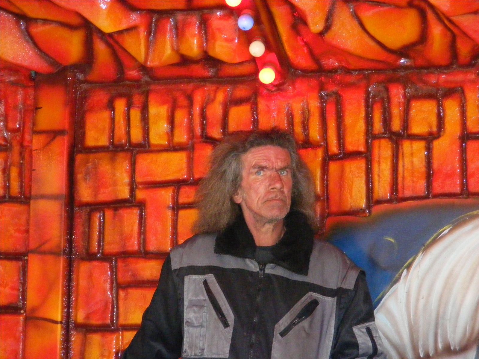 Das erste Bild, wo der Mitarbeiter von der grossen Geisterbahn ist, finde ich besonders gut. Irgendwie merkt man das er in der Geisterbahn arbeitet, wegen seiner Frisur . Er macht mir ein wenig Angst, vom Gesichtsausdruck her. In Bad Dürkheim wirkte